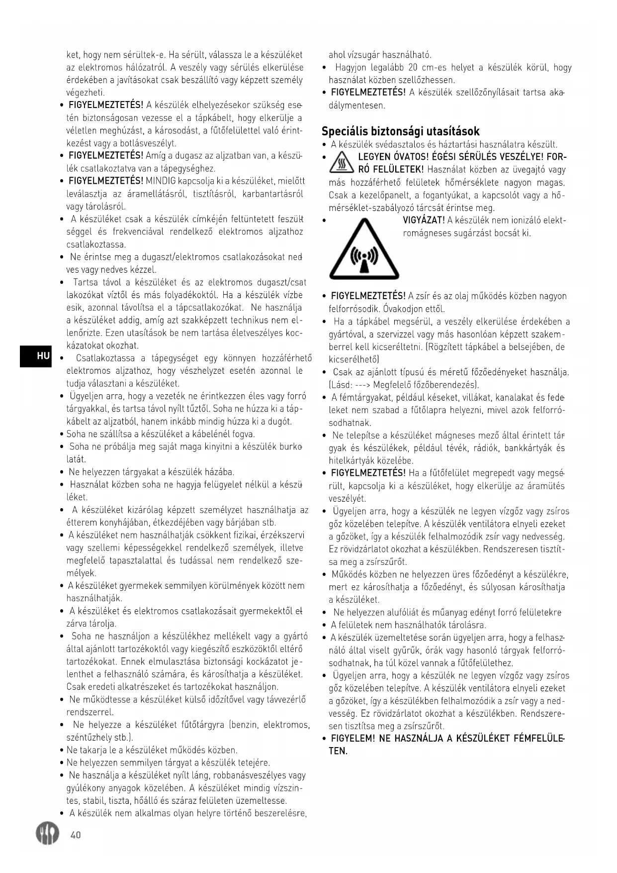 VIGYÁZAT! A készülék nem ionizáló elekt- romágneses sugárzást bocsát ki.