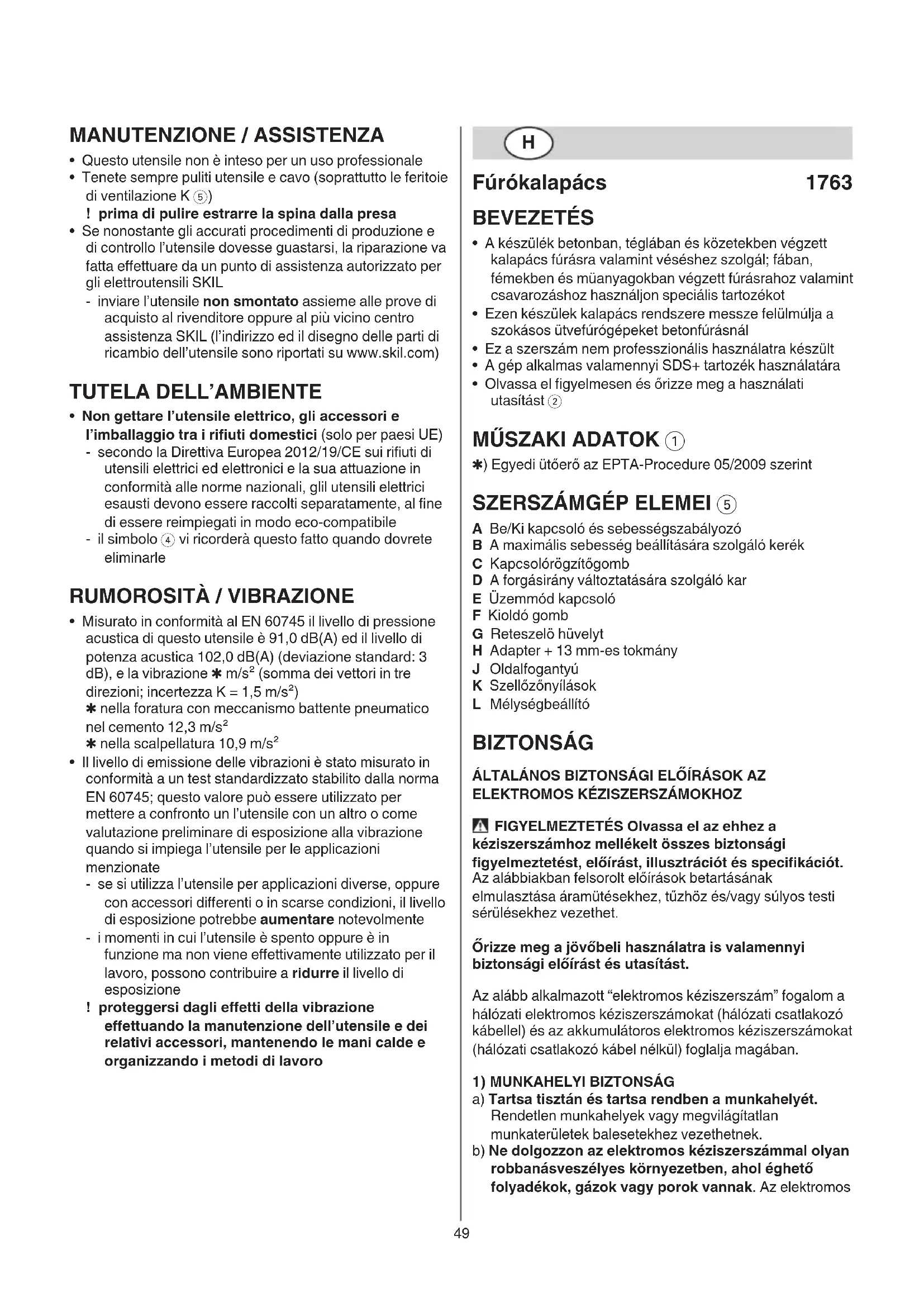 Találja meg az eszköz kézikönyvét ingyenesen 1763 AK SKIL PDF formátumban.