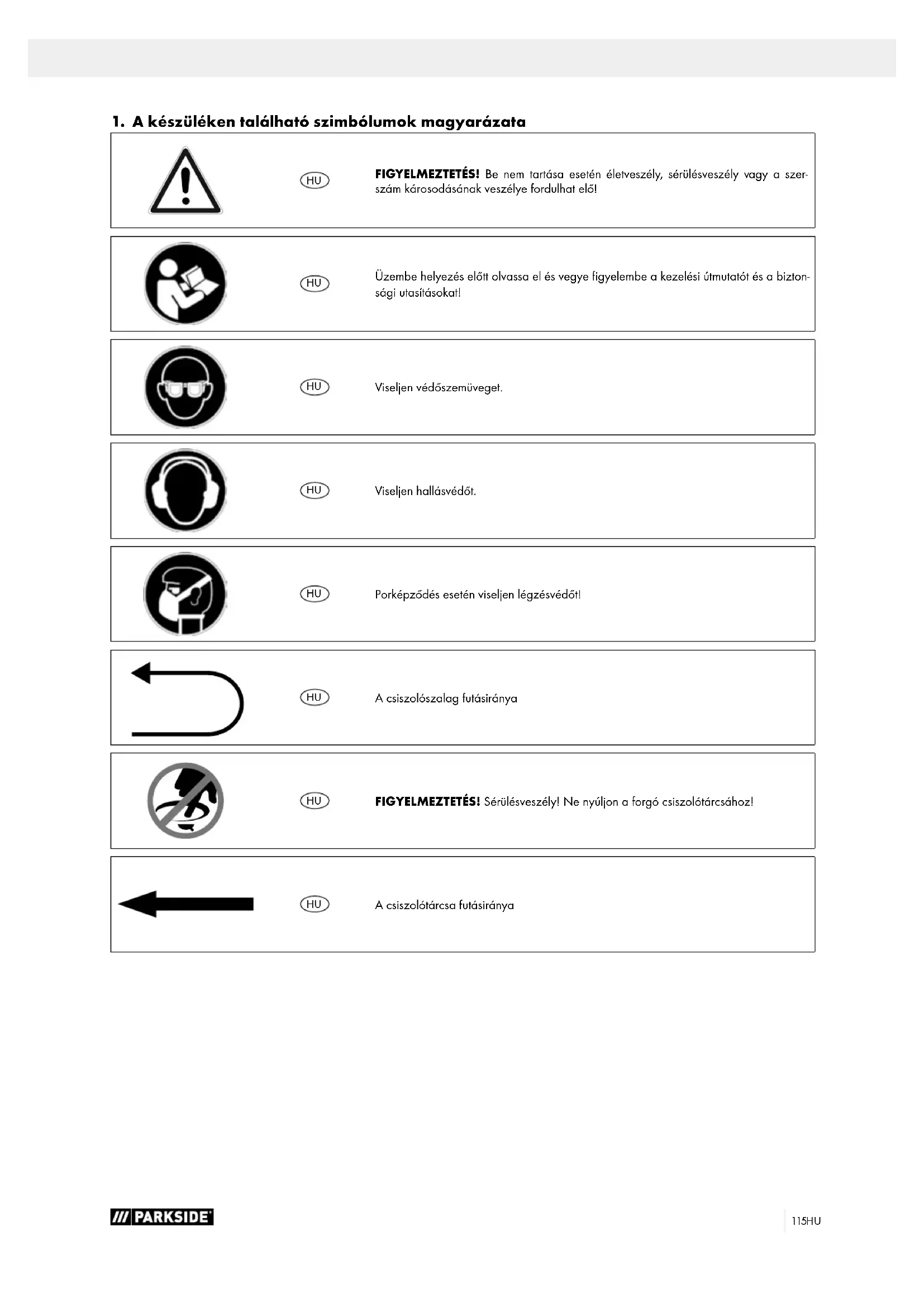 1. A készüléken található szimbólumok magyarázata