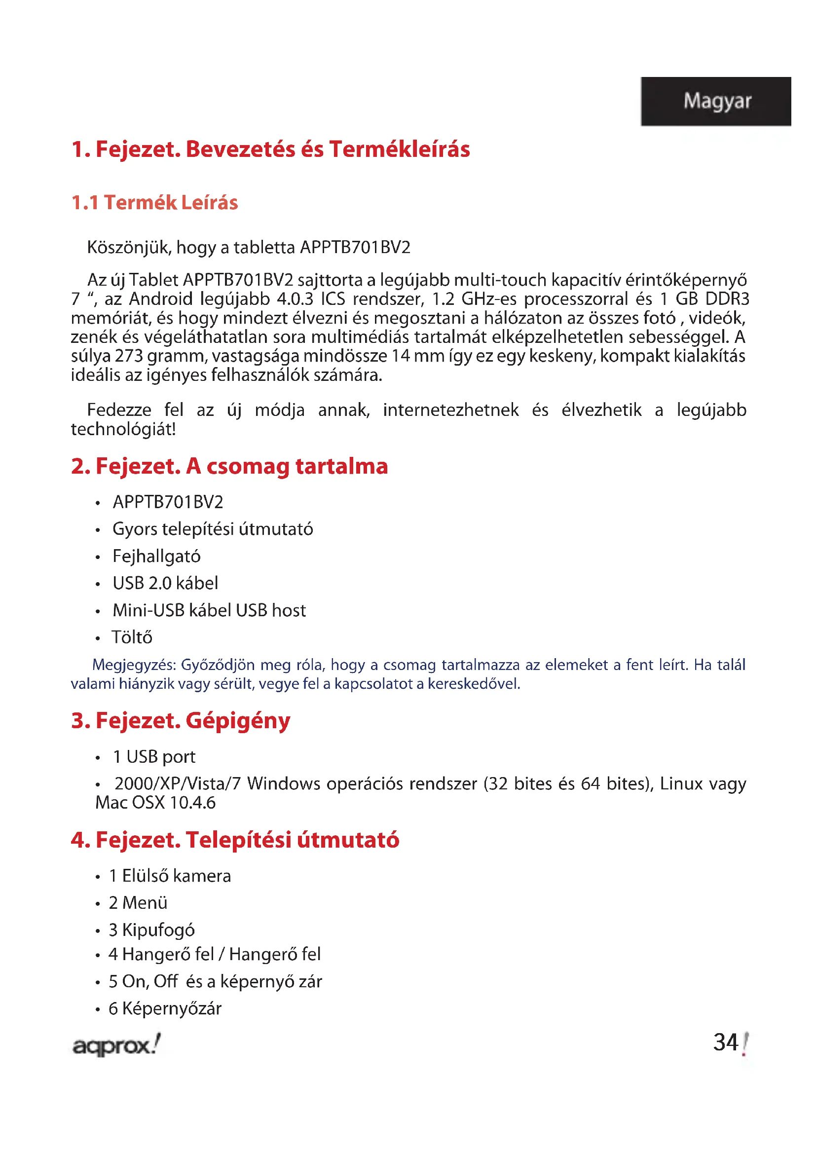 appTB701BV2 - Tablet Aqprox - Ingyenes használati útmutató