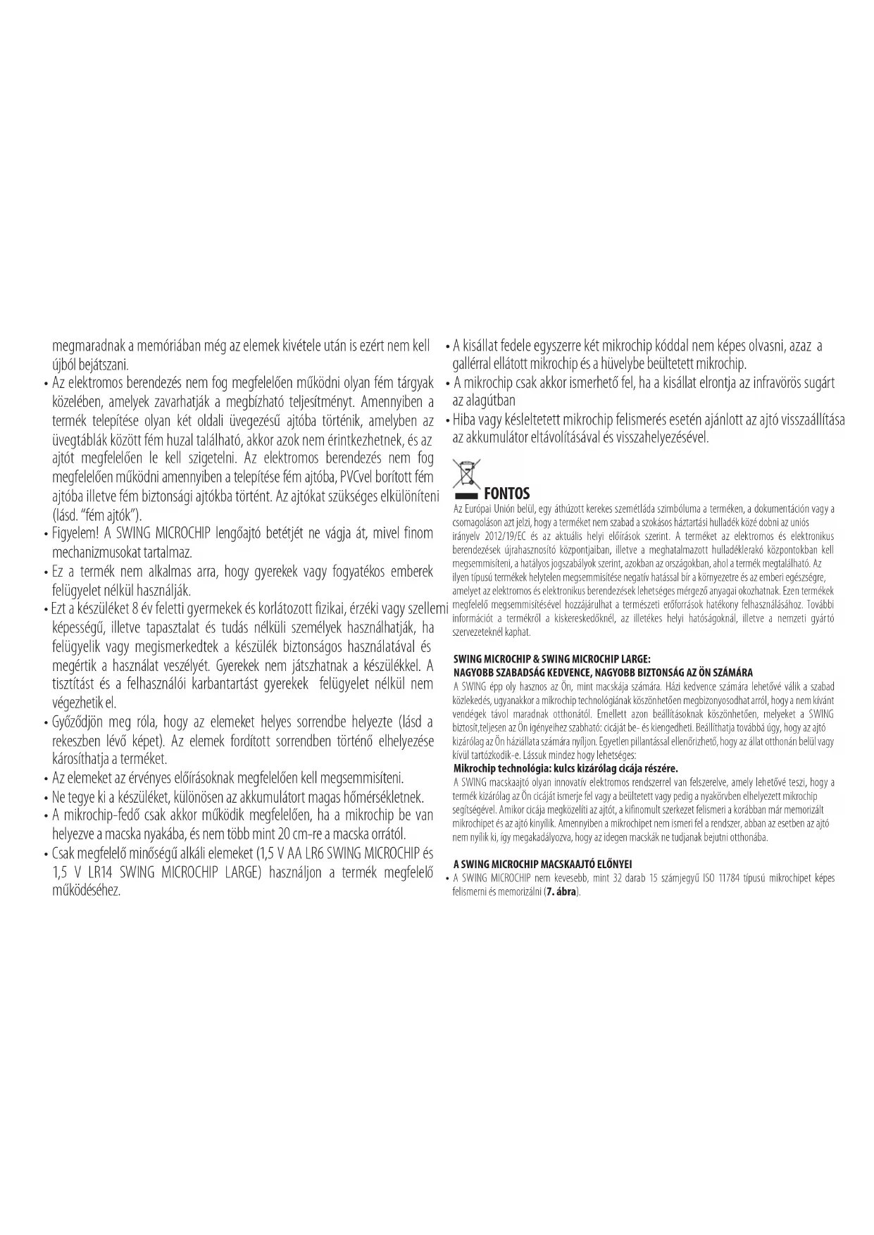 - Csak megfelelő minőségű alkáli elemeket (1,5 V AA LR6 SWING MICROCHIP és 1,5 V LR14 SWING MICROCHIP LARGE) használjon a termék megfelelő működéséhez.