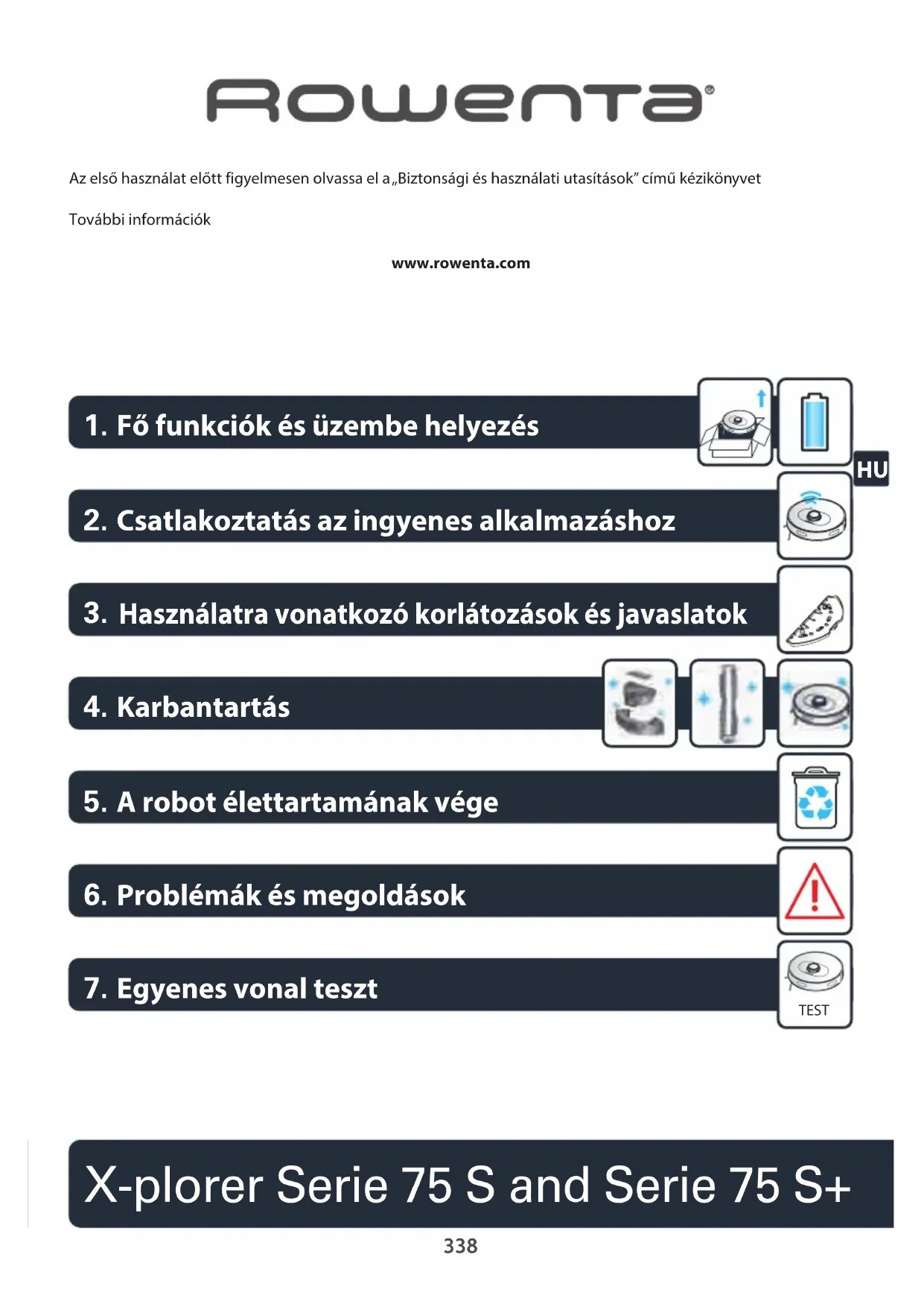www.rowenta.com Az első használat előtt figyelmesen olvassa el a „Biztonsági és használati utasítások” című kézikönyvet További információk X-plorer Serie 75 S and Serie 75 S+