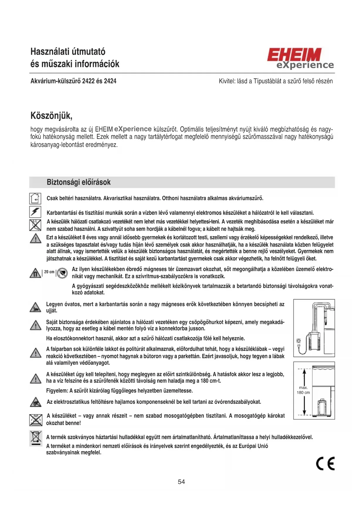 HASZNÁLATI ÚTMUTATÓ eXperience 150 EHEIM