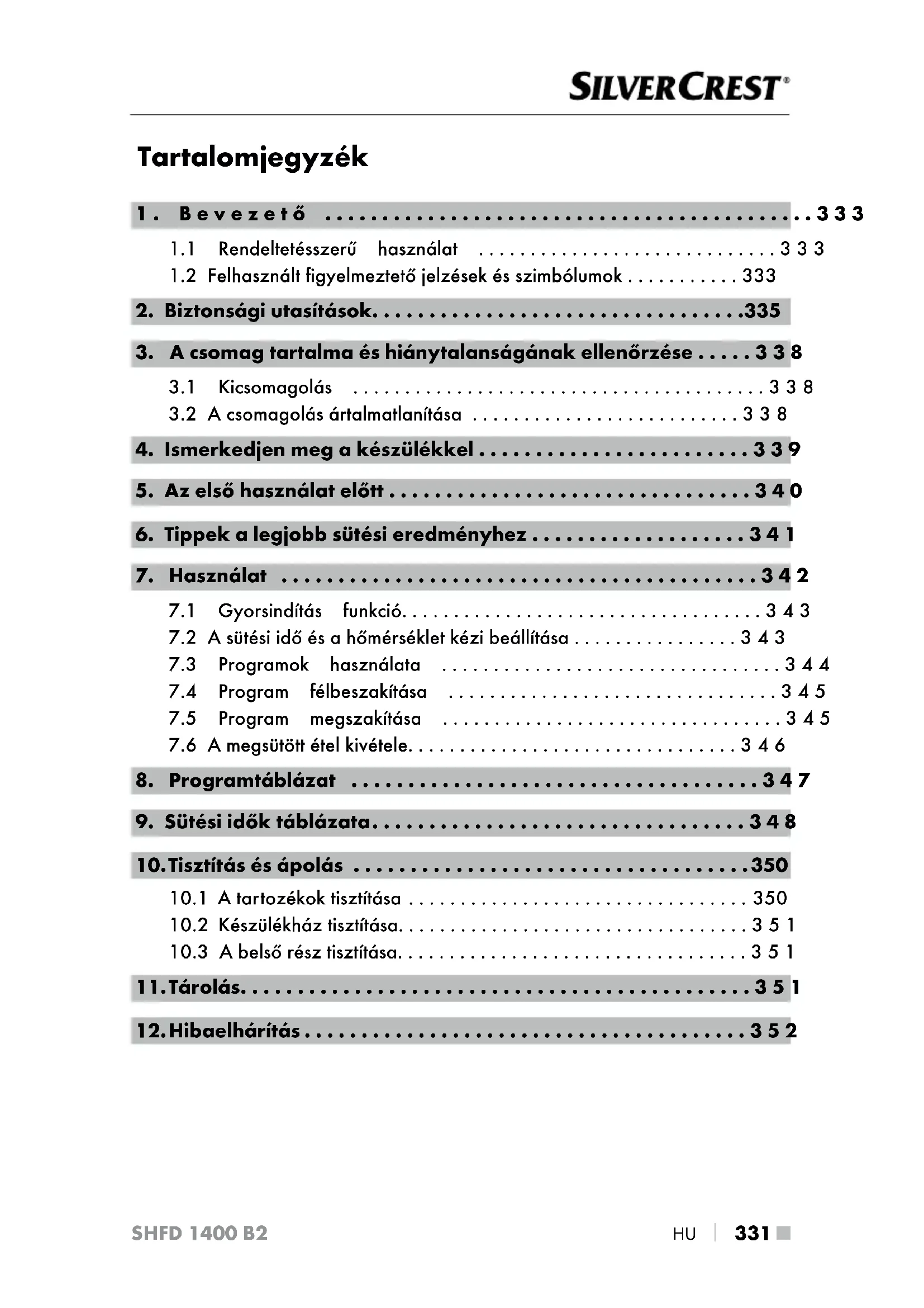 HASZNÁLATI ÚTMUTATÓ SHFD 1400 B2 SILVERCREST