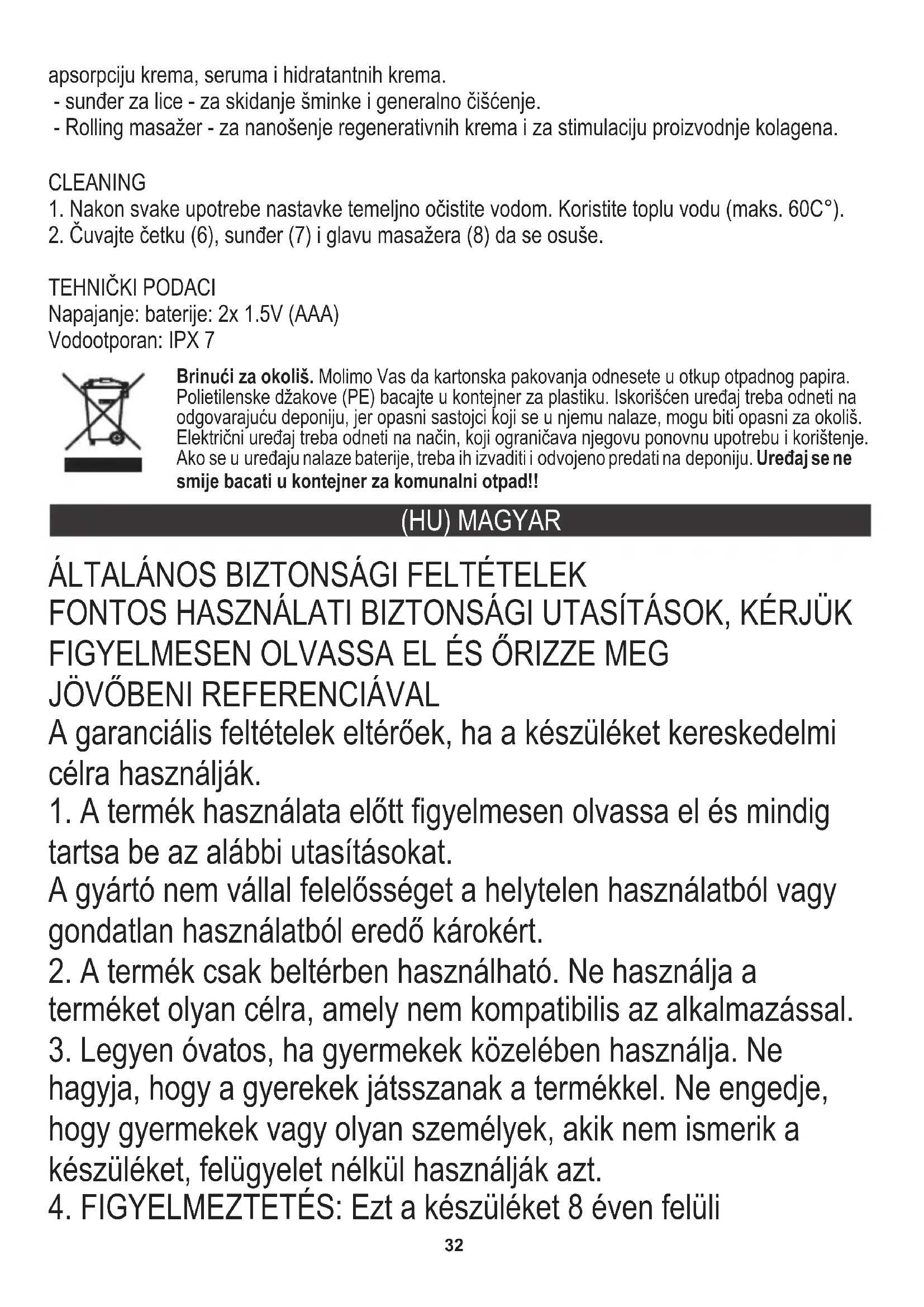 FIGYELMEZTETÉS: Óvatosan használja a terméket, ha a bőr érzékeny és/vagy már tapasztalt bőrirritációt vagy duzzanatot. Vegye figyelembe, hogy a szem körüli és az ajkak bőre vékonyabb és érzékenyebb, ne használjon eszközt ezen a területen.