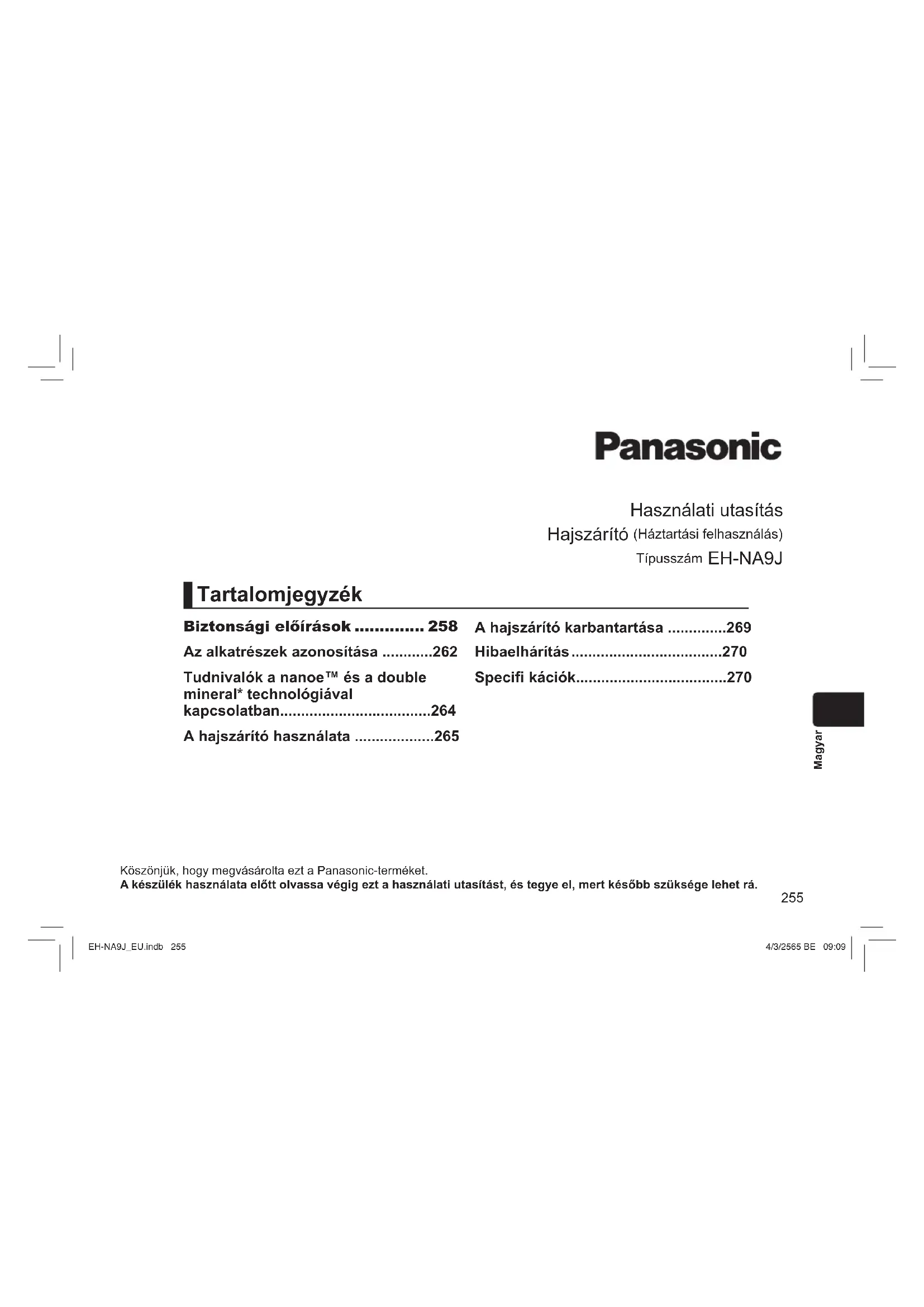 HASZNÁLATI ÚTMUTATÓ EHNA9J PANASONIC