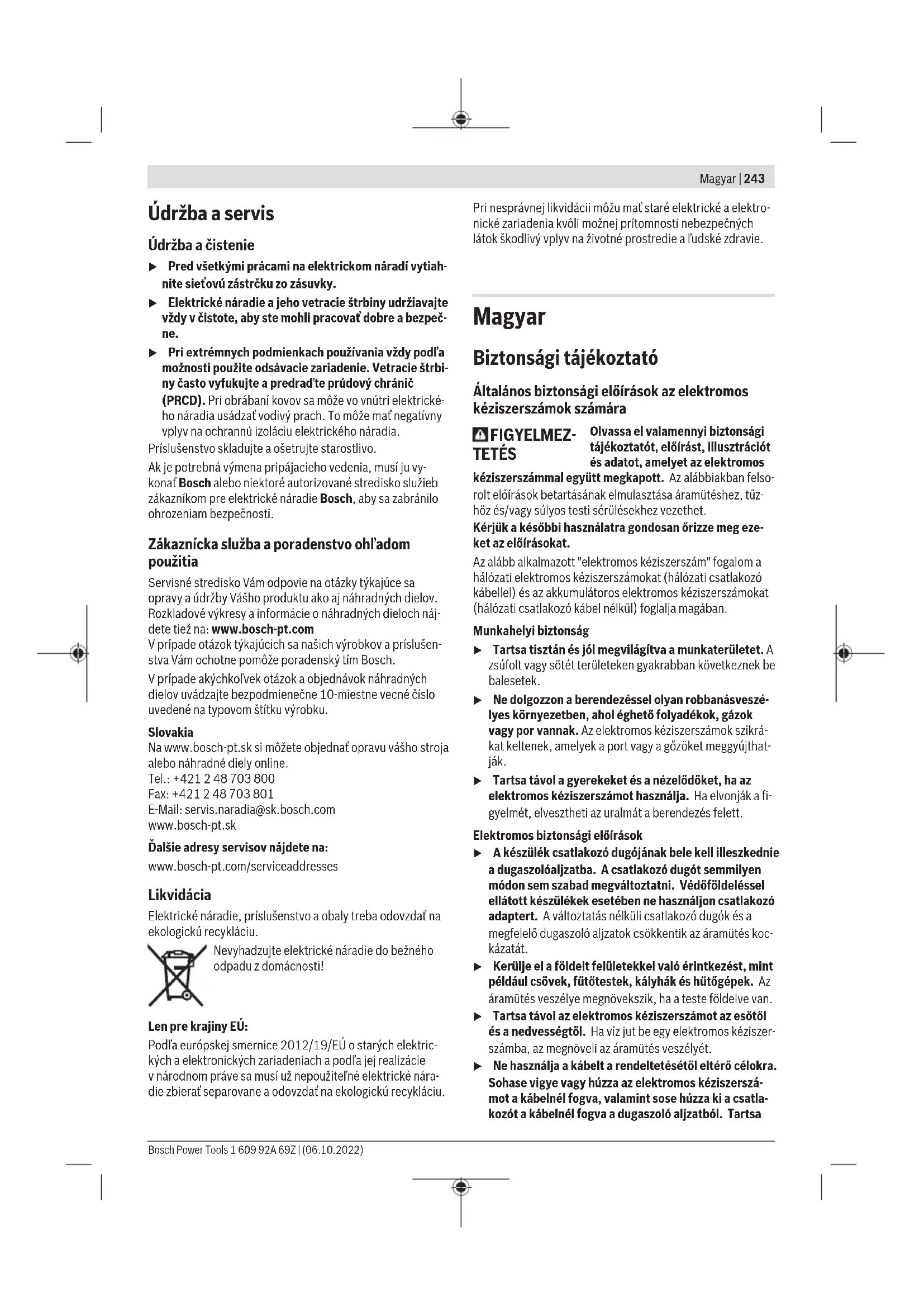 1 609 92A 69Z | (06.10.2022) Bosch Power ToolsMagyar | 253 Fokozat Fordulatszám előválasztás