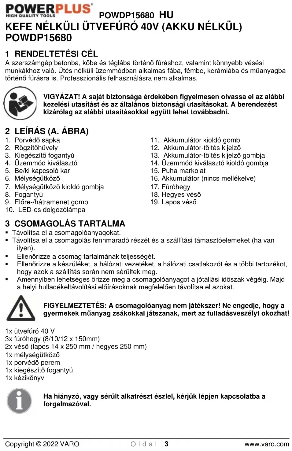 3 CSOMAGOLÁS TARTALMA