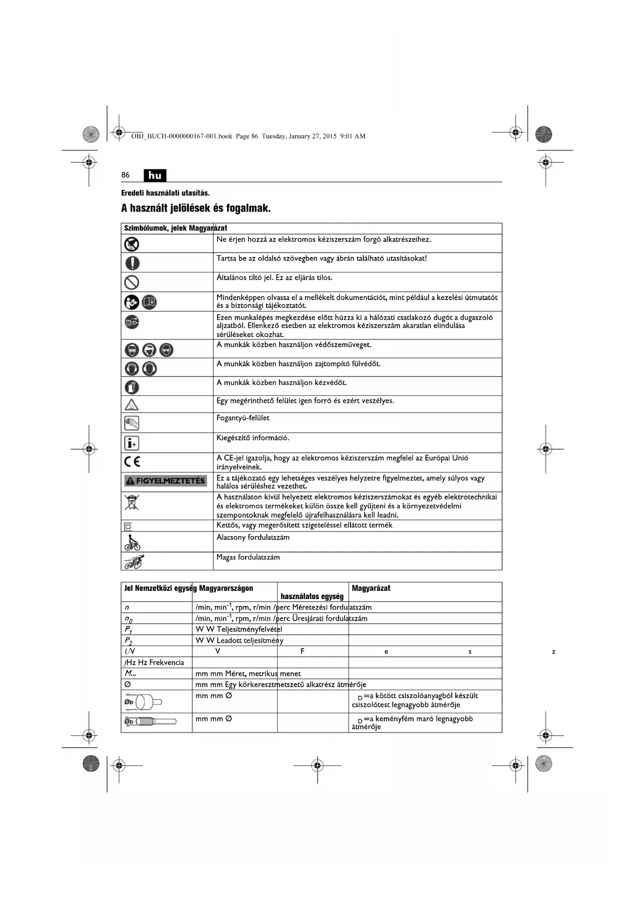 Az elektromos keziszerszamra tablakat es jeleket czavarokkval yagg szegecekkel feferositeni tilos. Egy megrongalodott szigetelems mar nim nyut videlmet az aramutes ellen. Hasznaljon ontapados matricakat.