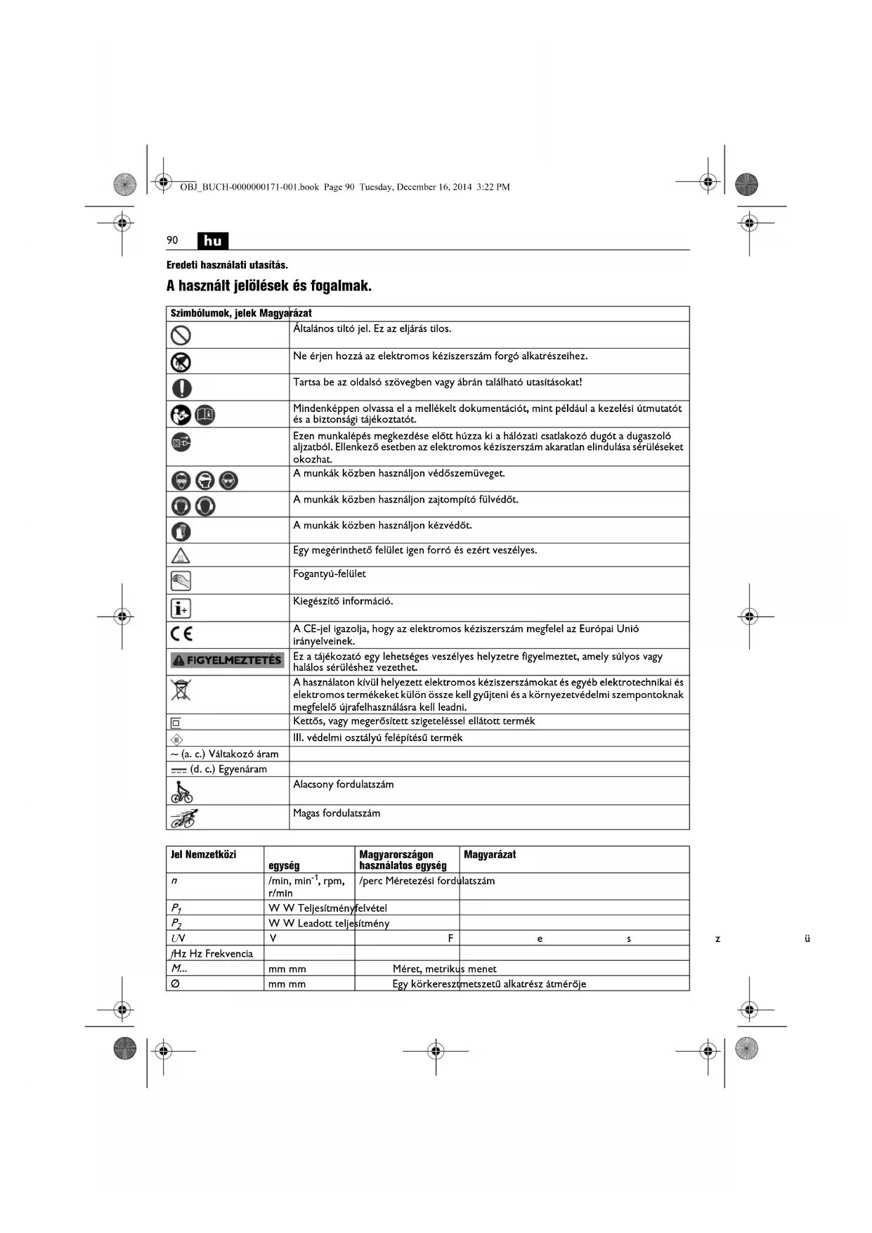 W W Leadott teljesítmény U VV Feszültség f Hz Hz Frekvencia M... mm mm Méret, metrikus menet Ø mm mm Egy körkeresztmetszetű alkatrész átmérője OBJ_BUCH-0000000171-001.book Page 90 Tuesday, December 16, 2014 3:22 PM91