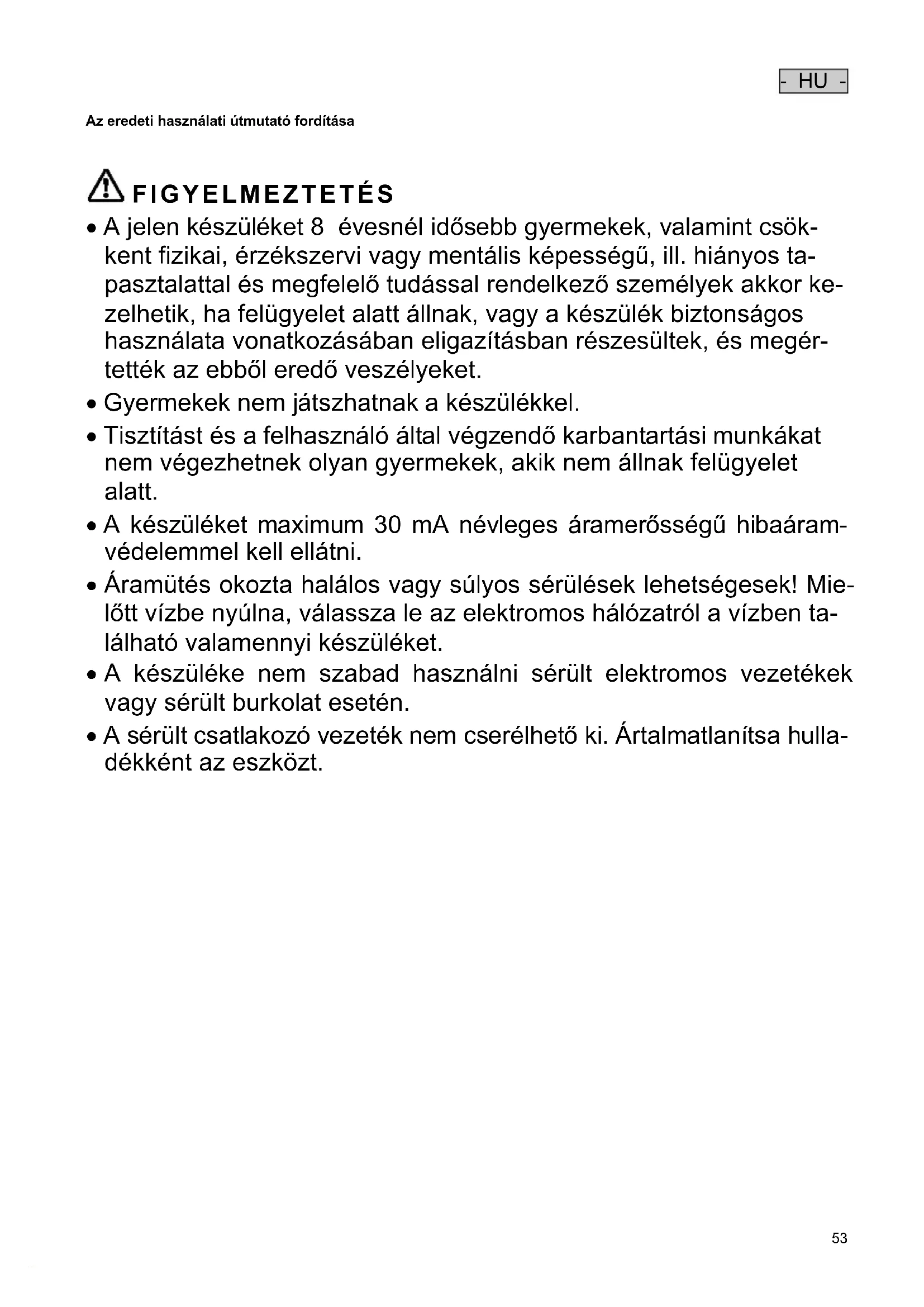- HU - Az eredeti használati útmutató fordítása
