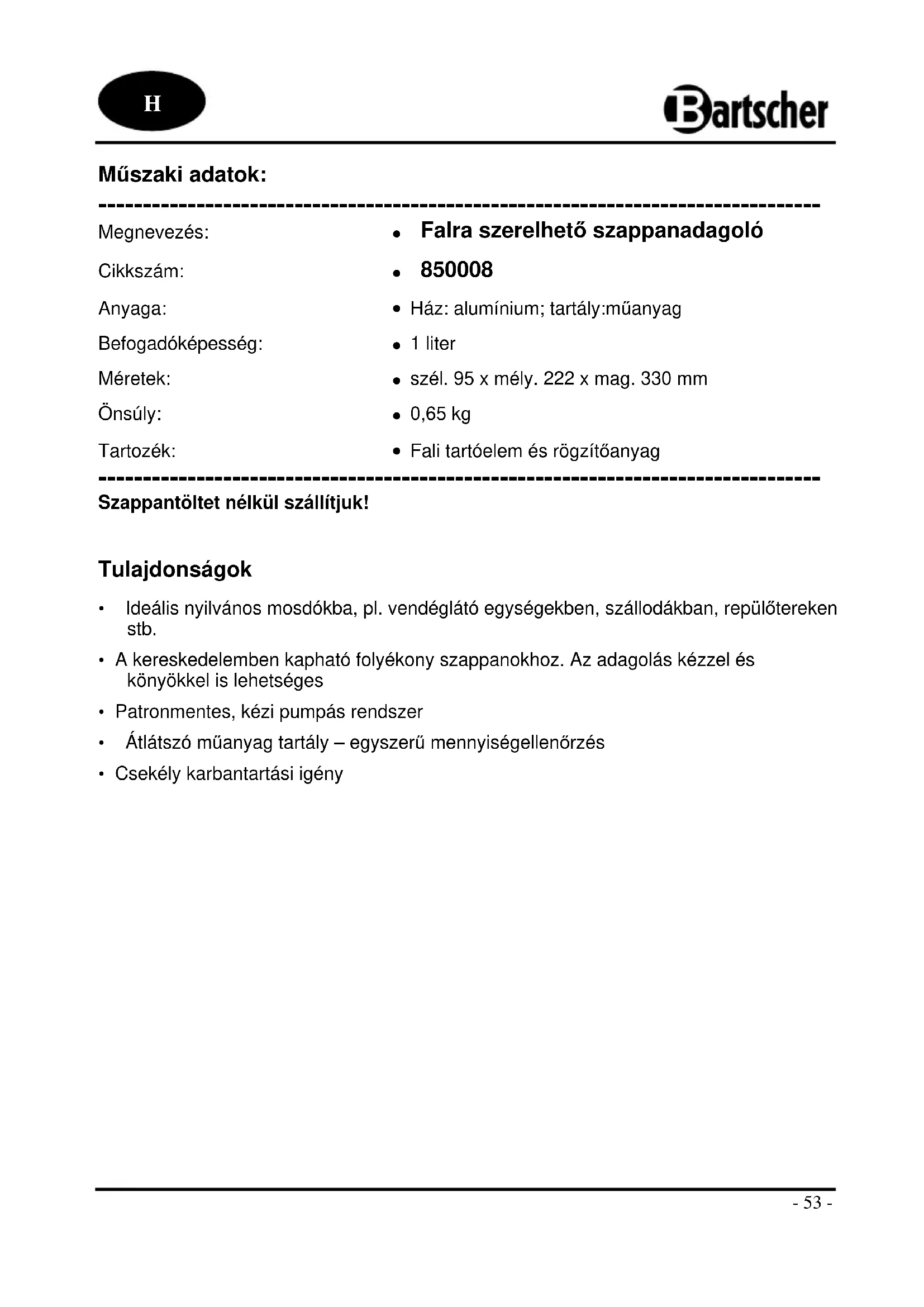 850008 - Szappanadagoló BARTSCHER - Ingyenes használati útmutató