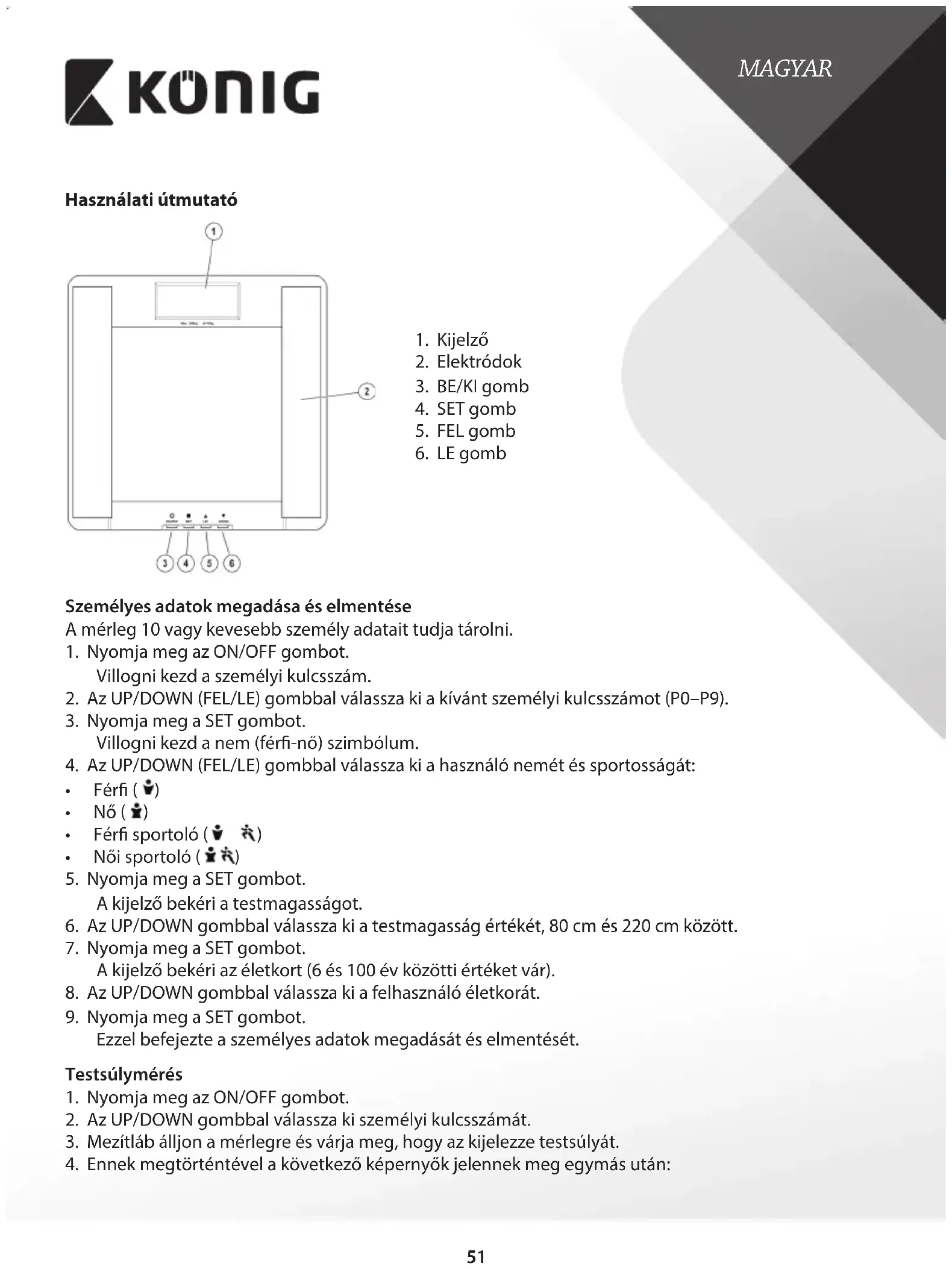 Személyes adatok megadása és elmentése A mérleg 10 vagy kevesebb személy adatait tudja tárolni.