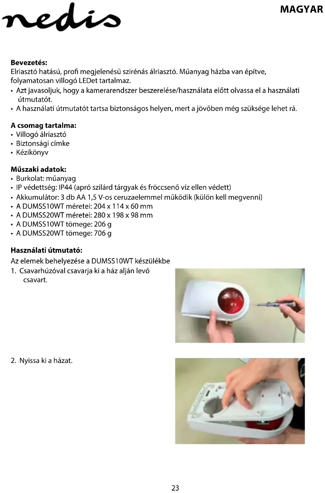 DUMSS20WT - Riasztórendszer NEDIS - Ingyenes használati útmutató