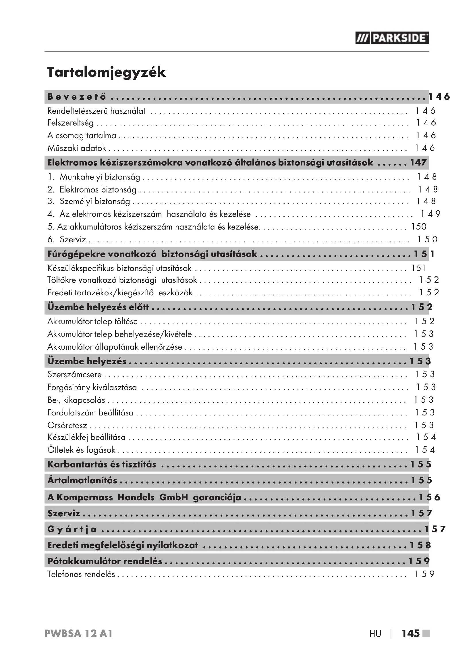 - 145 ■ PWBSA 12 A1 Tartalomjegyzék Bevezető p. 146