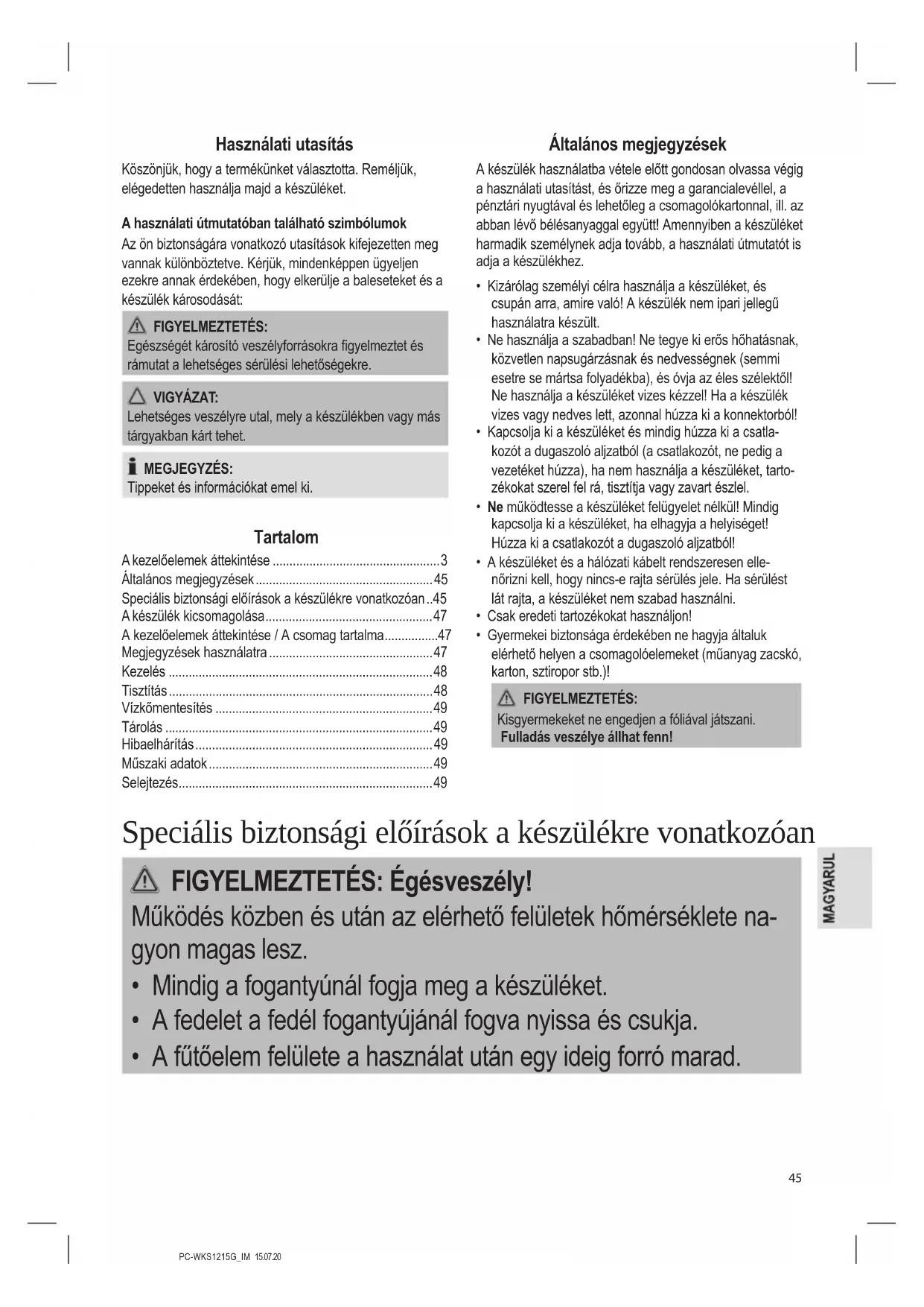 - A fűtőelem felülete a használat után egy ideig forró marad.PC-WKS1215G_IM 15.07.20