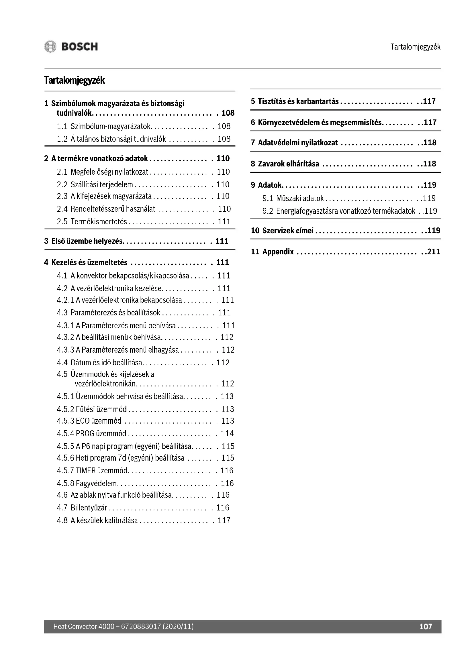 Heat Convector 4000 – 6720883017 (2020/11) Tartalomjegyzék 1 Szimbólumok magyarázata és biztonsági tudnivalók. . . . . . . . . . . . . . . . . . . . . . . . . . . . . . . . . . 108