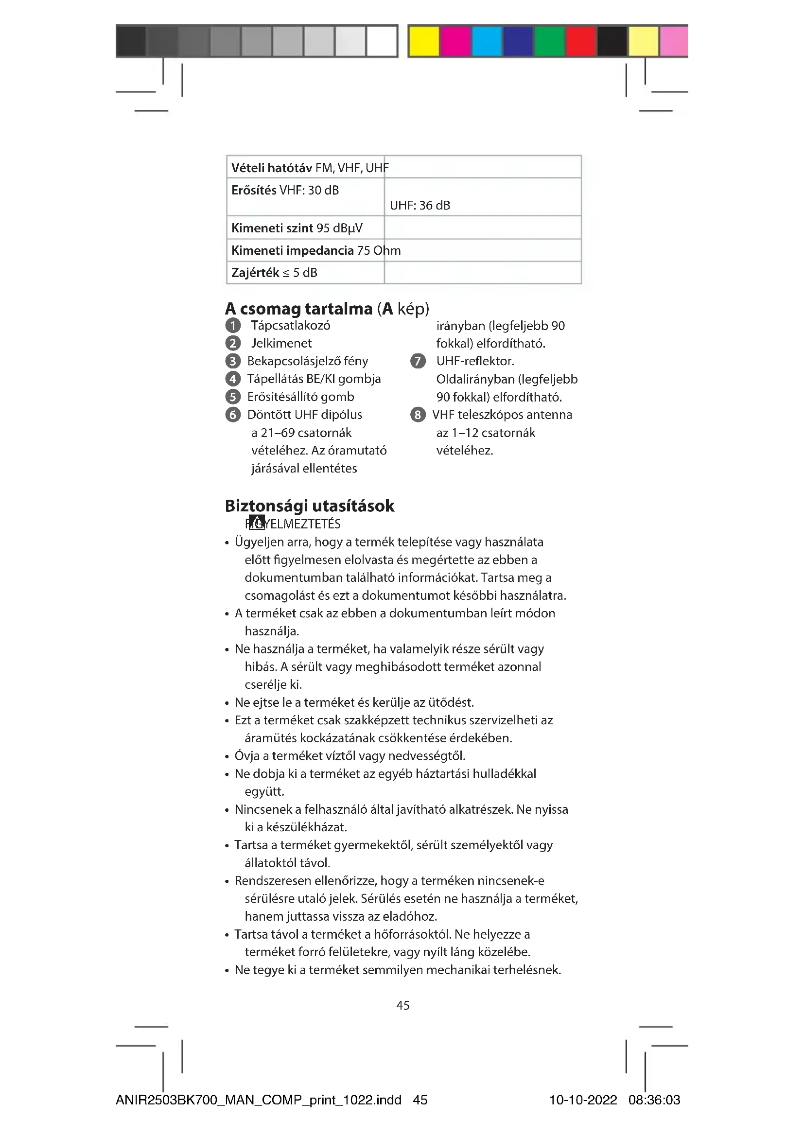 - Ne tegye ki a terméket semmilyen mechanikai terhelésnek. ANIR2503BK700_MAN_COMP_print_1022.indd 45ANIR2503BK700_MAN_COMP_print_1022.indd 45 10-10-2022 08:36:0310-10-2022 08:36:0346