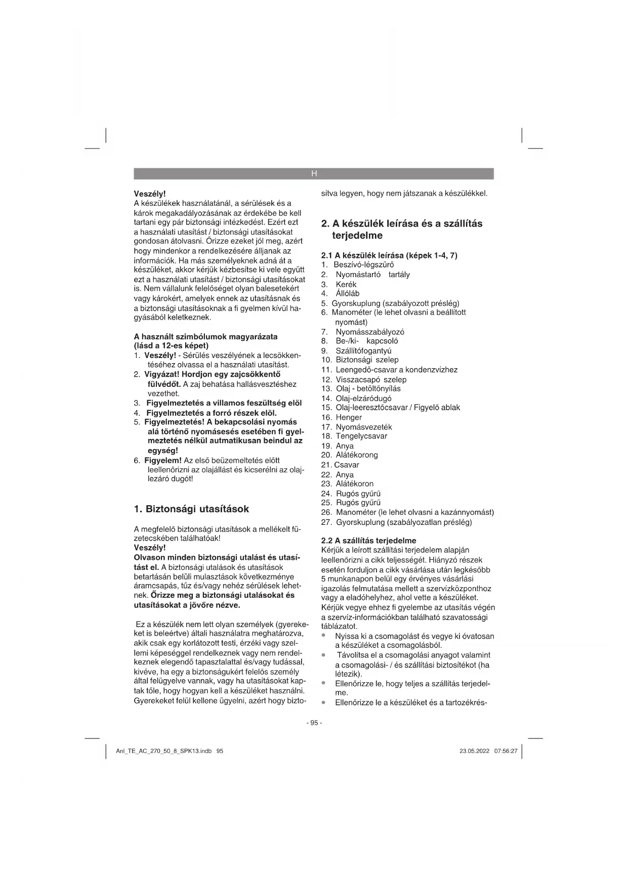Ellenőrizze le a készüléket és a tartozékrés- Anl_TE_AC_270_50_8_SPK13.indb 95Anl_TE_AC_270_50_8_SPK13.indb 95 23.05.2022 07:56:2723.05.2022 07:56:27H