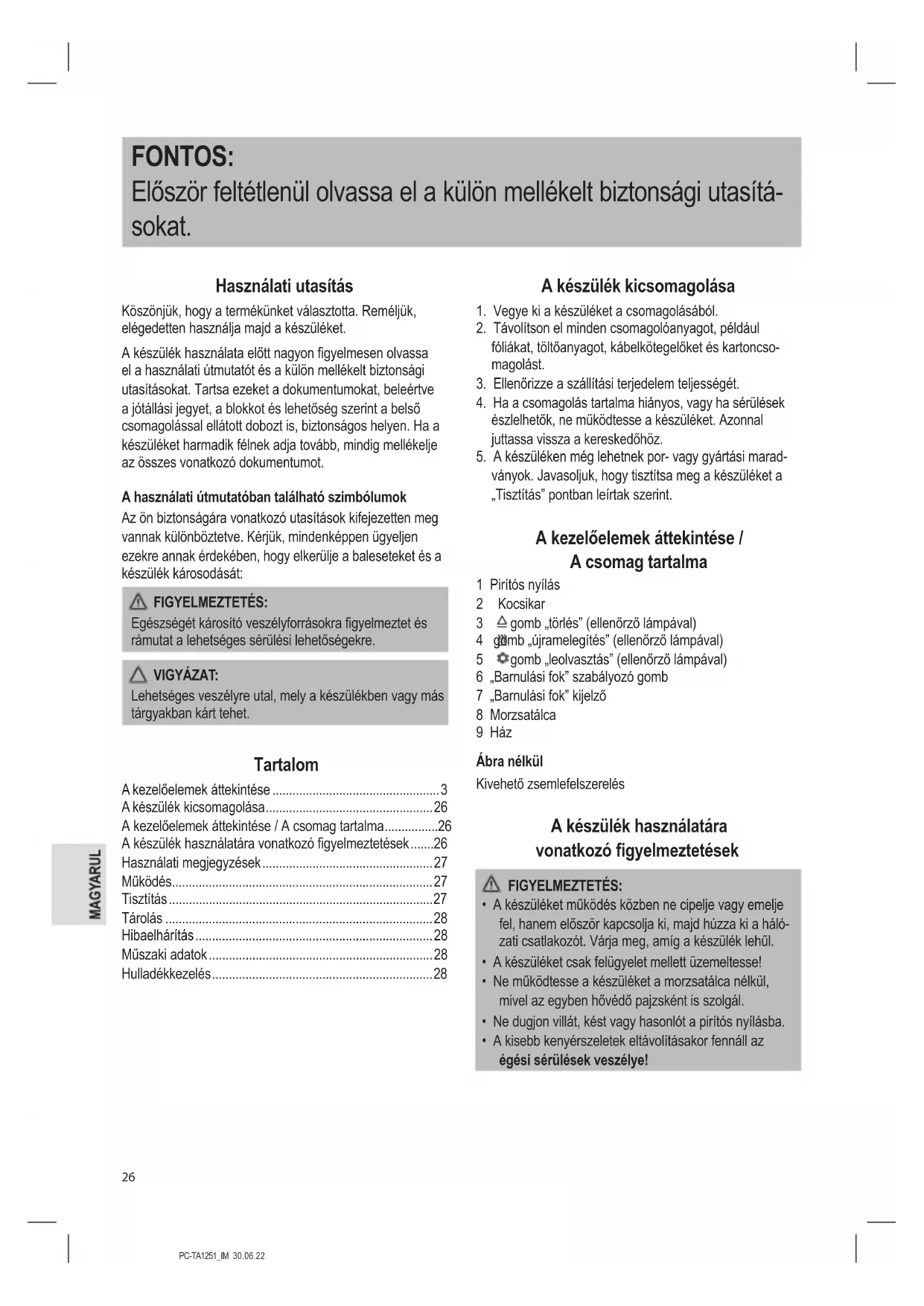 - A kisebb kenyérszeletek eltávolításakor fennáll az égési sérülések veszélye!PC-TA1251_IM 30.06.22