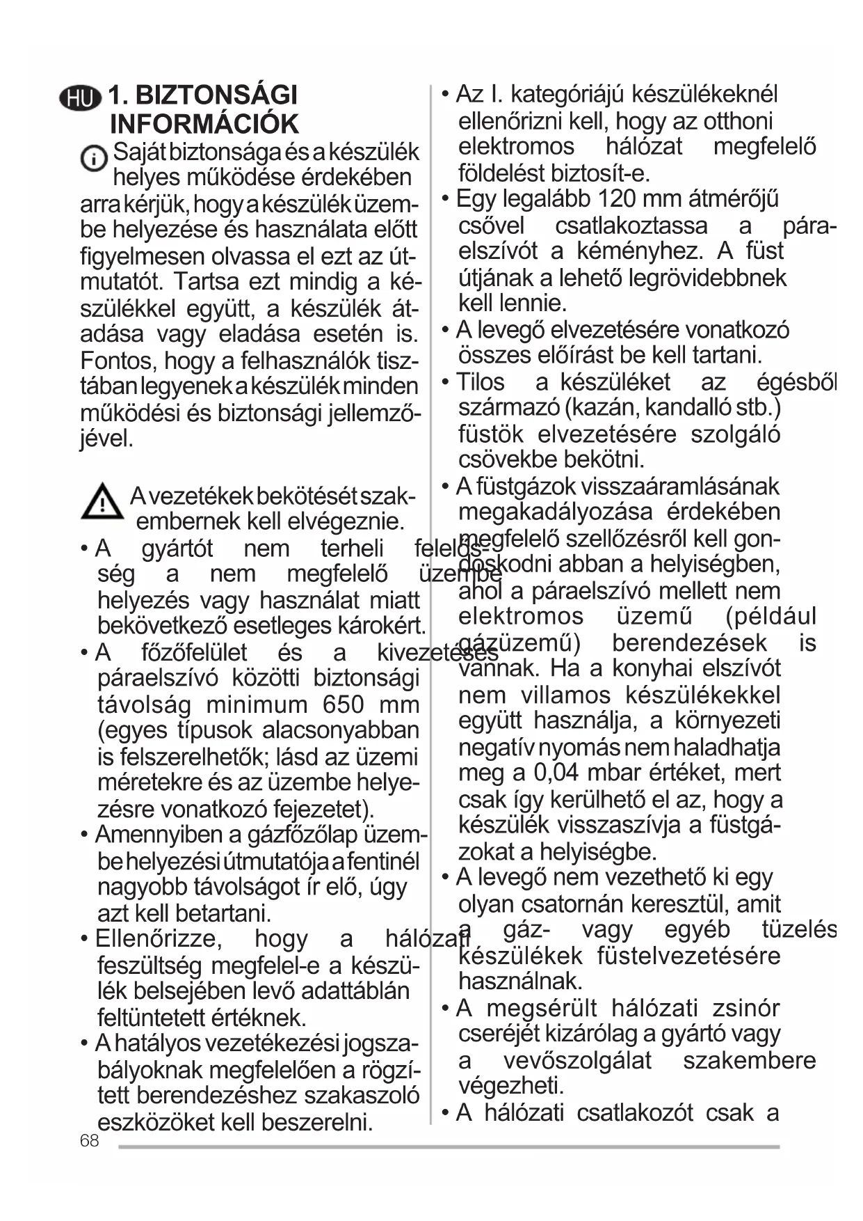 - A füstelvezetésre vonatkozó műszakiésbiztonságiteendőket illetőenfontosahelyihatóságok által előírt szabályok szigorú betartása. FIGYELMEZTETÉS: az el- szívóüzembehelyezéseelőtt elkelltávolítaniavédőfóliá- kat.
