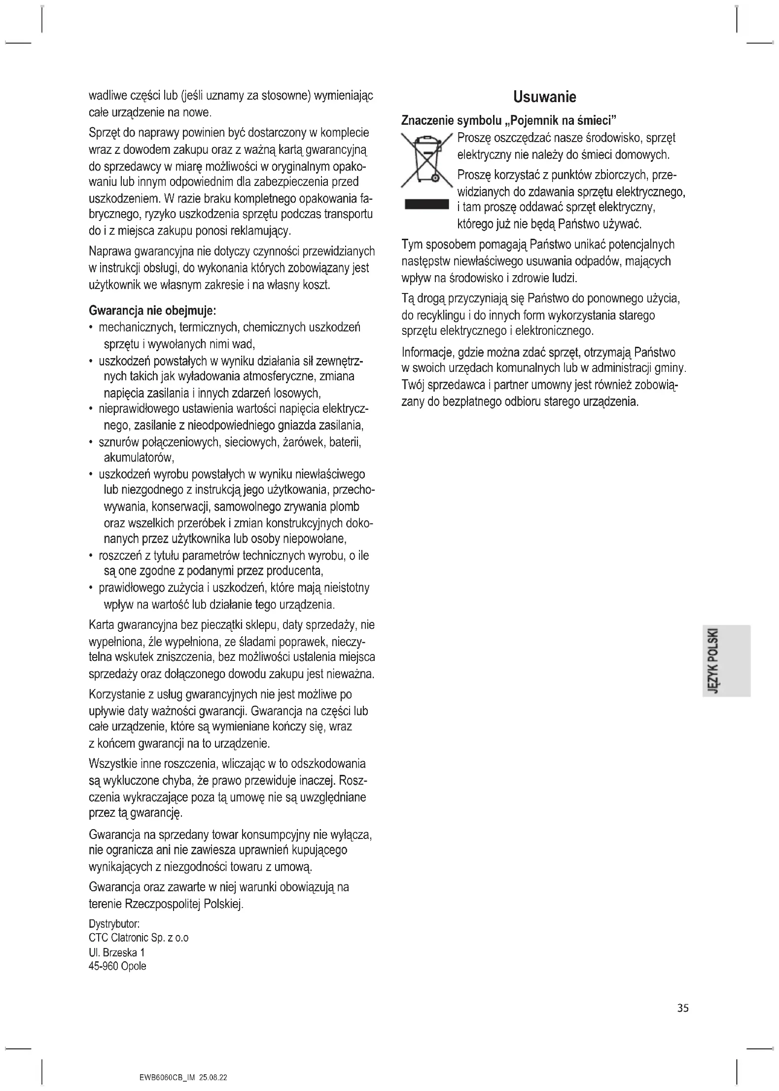 - Mindig tartsa távol a gyerekektől a készüléket egy jól szellőztetett helyiségben.EWB6060CB_IM 25.08.22