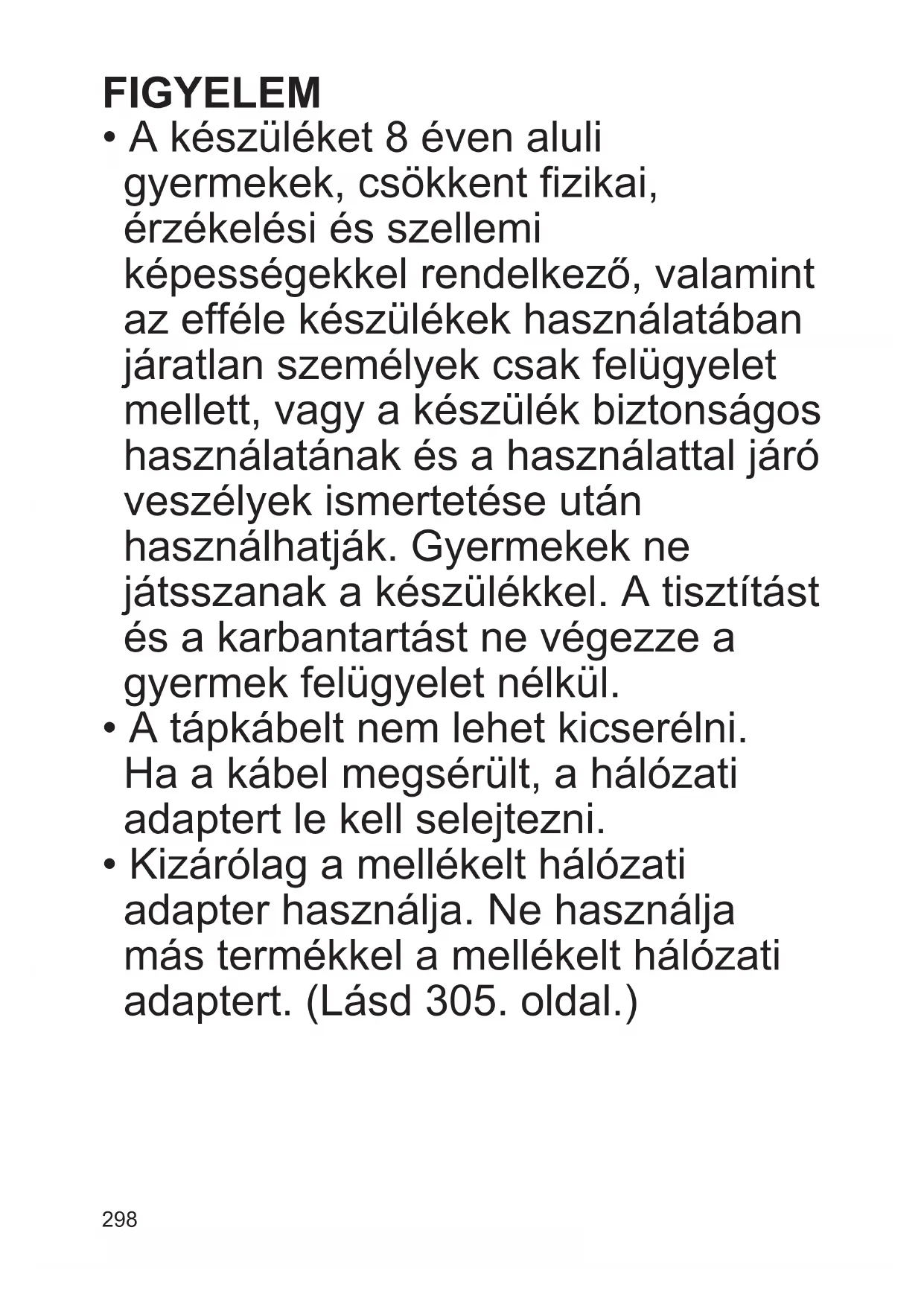 - Kizárólag a mellékelt hálózati adapter használja. Ne használja más termékkel a mellékelt hálózati adaptert. (Lásd 305. oldal.)299 GBDFINLEDKPNSFINPLCZSKHROTR
