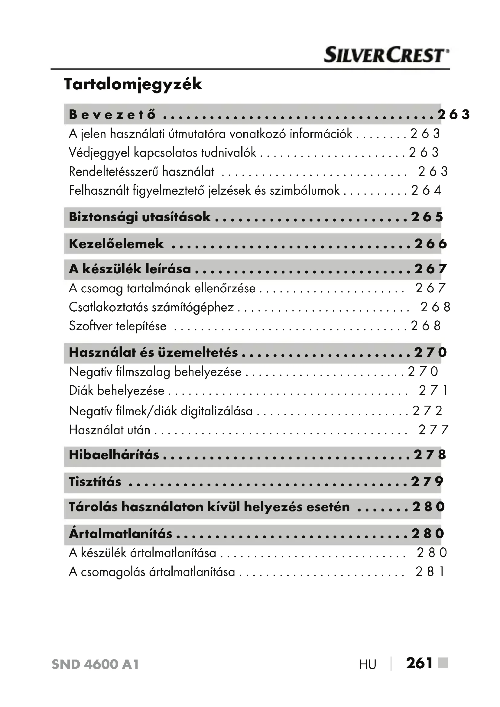 - A csomagolás ártalmatlanítása SND 4600 A1 ■ 262 p. 281
