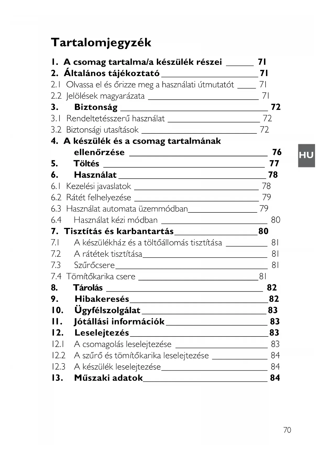 2.1 Olvassa el és őrizze meg a használati útmutatót ____ 71