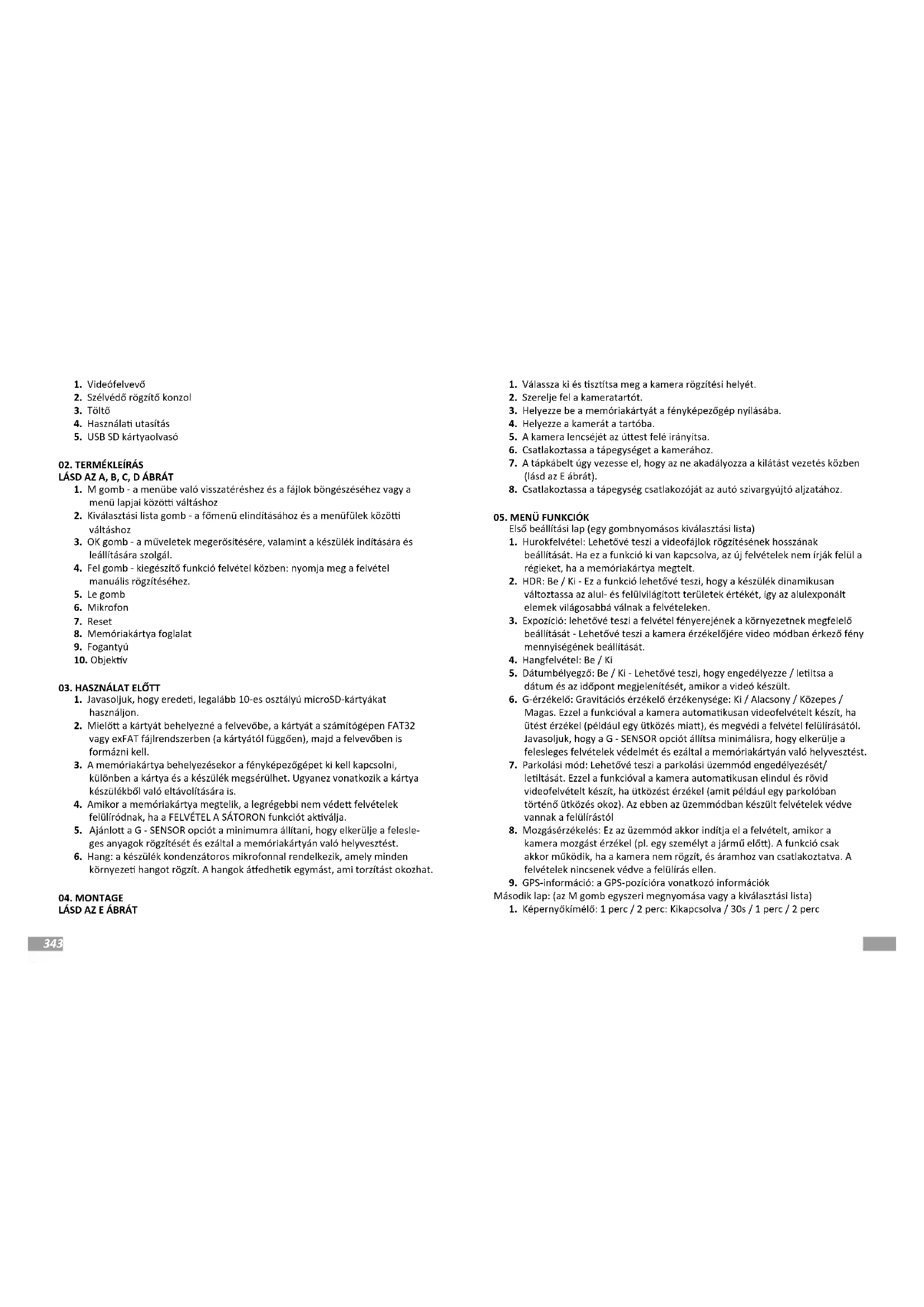 Nem G-érzékelő: Igen Mozgásérzékelés: Yes40 41 Wi: Wi: Nincs GPS: Igen Parkolási mód: Igen Kikötők: SD memóriakártya foglalat 128GB-ig Hangszóró: 8Ω/1W*1 Akkumulátor: 3.7V/100mAh LI-ION Tápegység: DC 5V/1A Működési frekvenciatartomány: 87.6-107.9MHz Maximális frekvenciateljesítmény a működési tartományban: -4,13dBm Méretek: 57x65x33mm Súly: 49g Nyelvek: angol, lengyel, német, francia, cseh, magyar, román