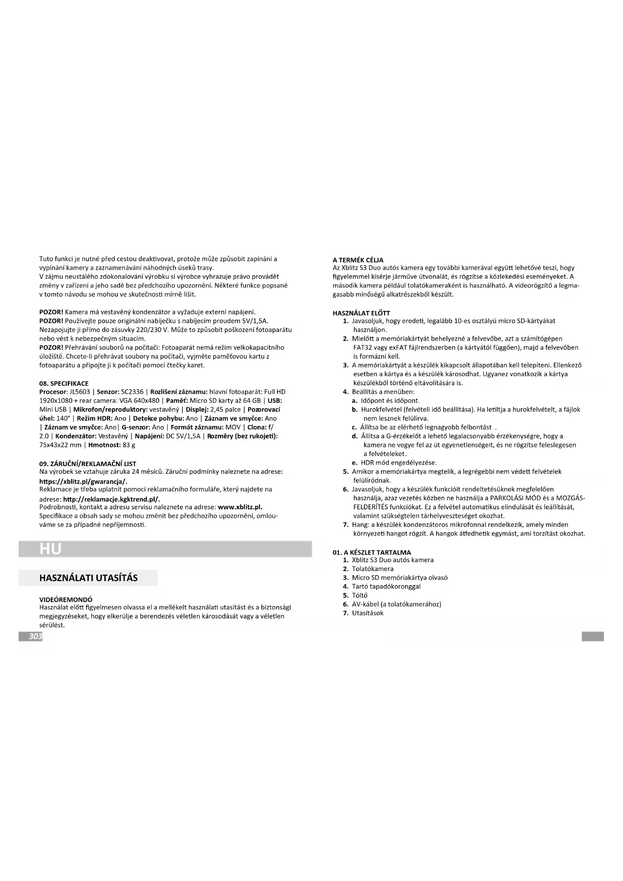 HASZNÁLATI ÚTMUTATÓ S3 Duo Xblitz