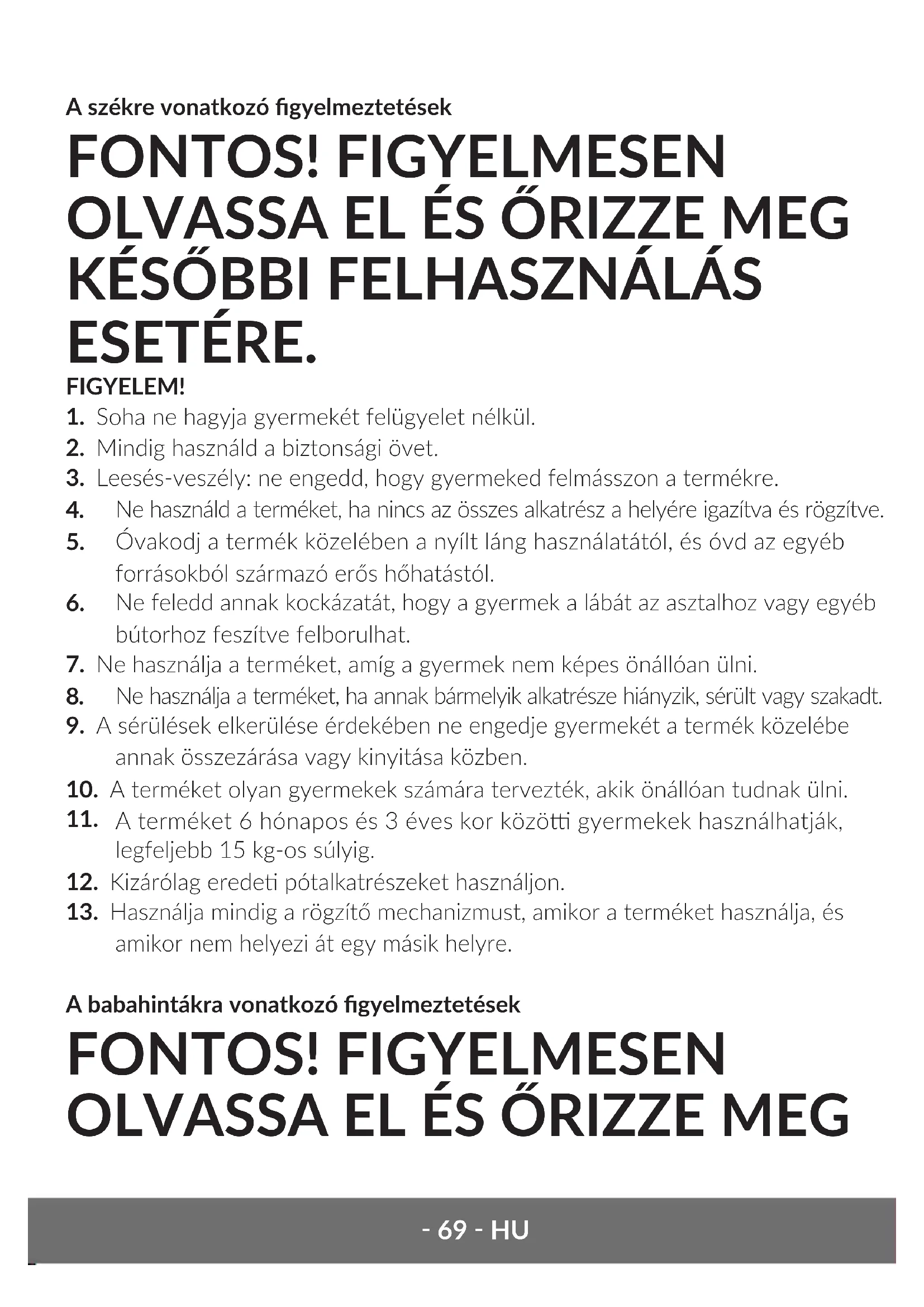 7. Ne használja a terméket, amíg a gyermek nem képes önállóan ülni.