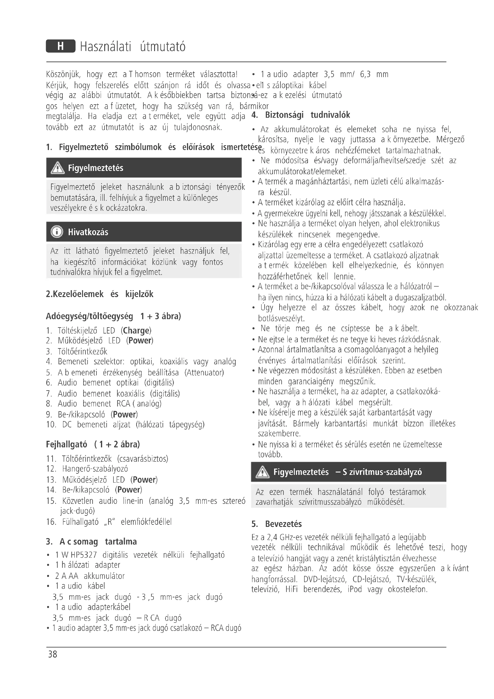 HASZNÁLATI ÚTMUTATÓ WHP5327 THOMSON