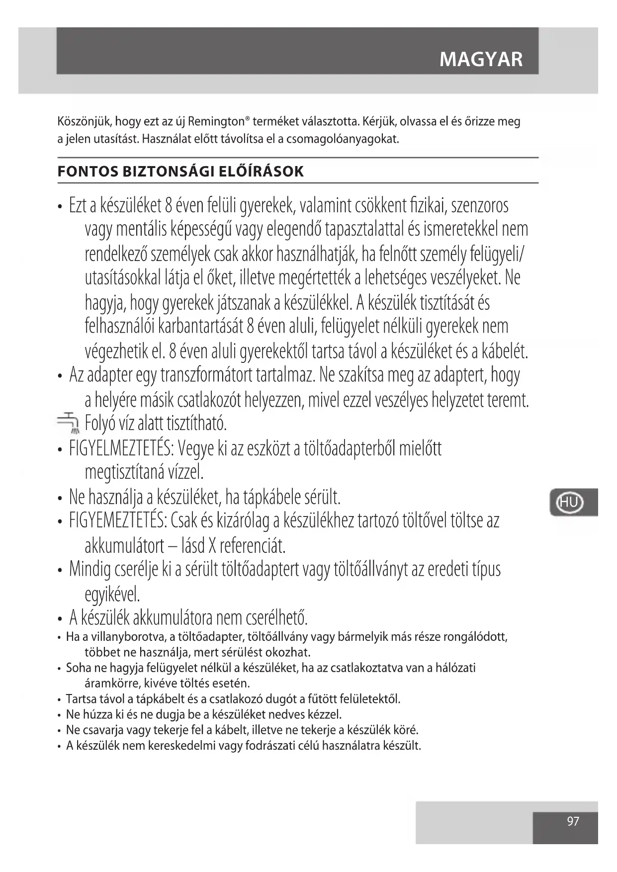 amelyekről el kívánja távolítani a testszőrzetet.101 MAGYAR