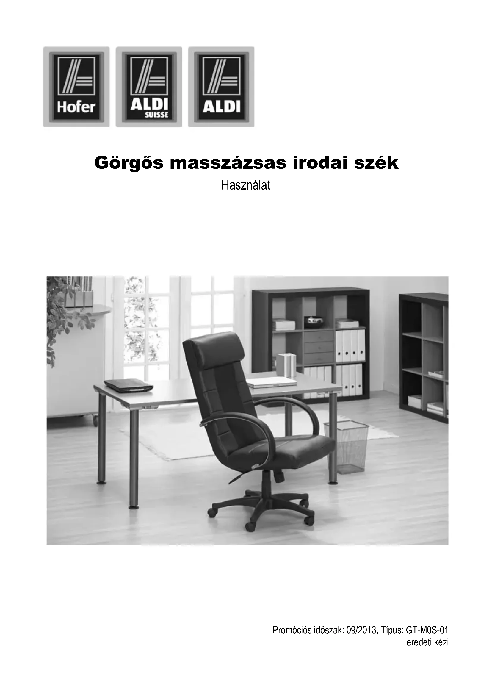 Gesamtbuch.book Seite 82 Mittwoch, 3. Juli 2013 11:06 11Használat Görgős masszázsas irodai szék Promóciós időszak: 09/2013, Típus: GT-M0S-01 eredeti kézi Gesamtbuch.book Seite 83 Mittwoch, 3. Juli 2013 11:06 11Gyártó: Globaltronics GmbH & Co. KG D-20095 Hamburg Domstr. 19 09/2013 Származási hely: Kína Megfelelőségi nyilatkozat Garantált a termék törvényileg előírt, hatályos szabványoknak való megfelelősége. A teljes megfelelőségi nyilatkozat a www.gt-support.de weboldalon található meg. Tisztelt Vásárló köszönjük, hogy e termék megvásárlása mellett döntött. Reméljük, hogy tetszik, és szívesen használja. Ezen útmutatóban pontosan le van írva, hogyan lehet e terméket optimálisan és biztonságosan használni. Kívánjuk, hogy sok öröme teljen benne! A bevizsgált biztonság jelölés (GS-jelölés) jelzi, hogy egy termék megfelel a német készülék- és termékbiz-tonsági törvény (ProdSG) követelményeinek. A GS-jelölés jelzi, hogy rendeltetésszerű használat és előrelátható helytelen használat estén a jelzett termékek nem veszélyeztetik a használó biztonságát és egészségét.Emellett egy önkéntesen elhelyezett jelről is szó van.Az TÜV Rheinland egy nemzetközileg elismert és akkre-ditált vizsgáló laboratórium, melynek több számos országban van képviselete.A CE-jelöléssel a gyártó igazolja, hogy a termék megfelel a termékspecifikus, hatályos, európai irányelveknek. www.tuv.comID 1000000000 Hálózati adapter Gesamtbuch.book Seite 84 Mittwoch, 3. Juli 2013 11:06 1185 Görgős masszázsas irodai szék Szállítási összeállítás