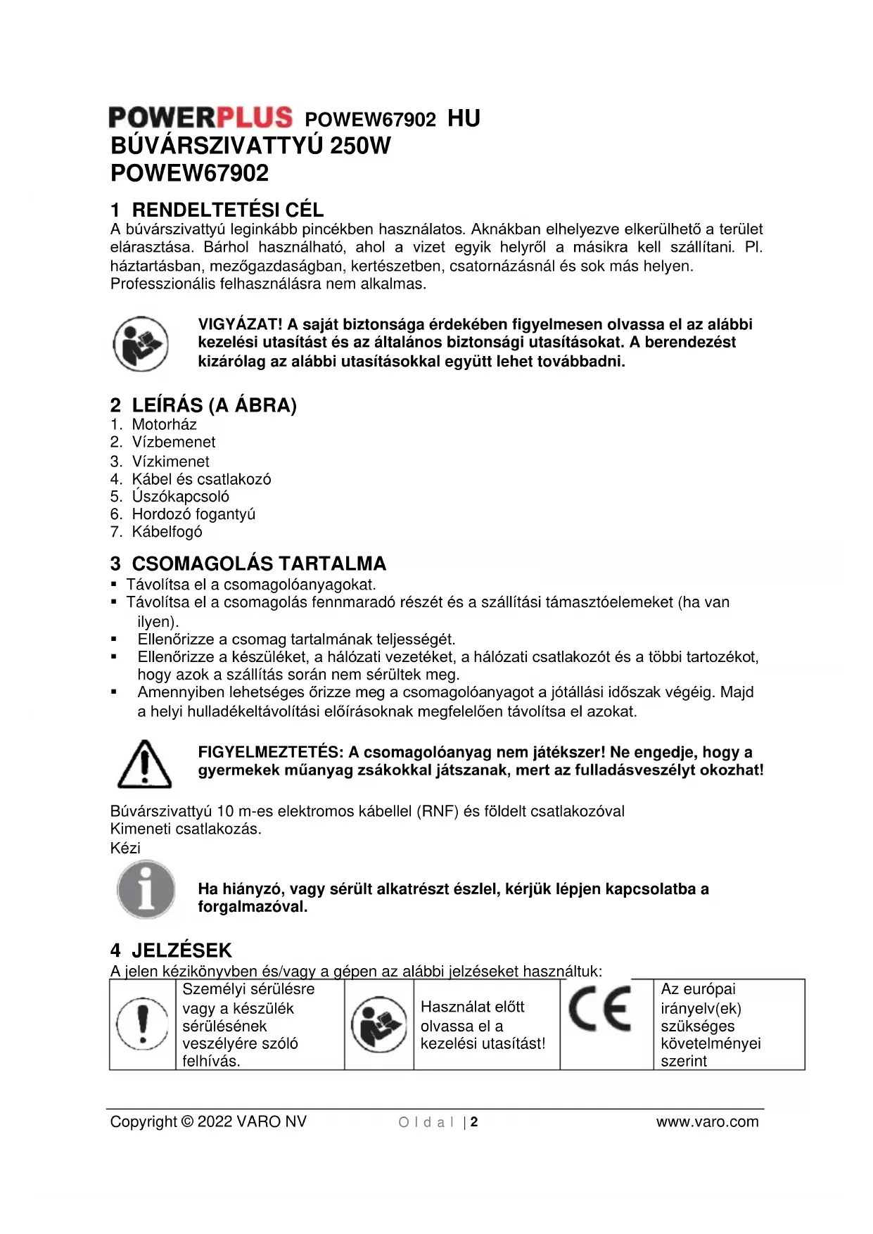 Az európai irányelv(ek) szükséges követelményei szerintPOWEW67902 HU Copyright © 2022 VARO NV O l d a l | 3 www.varo.com