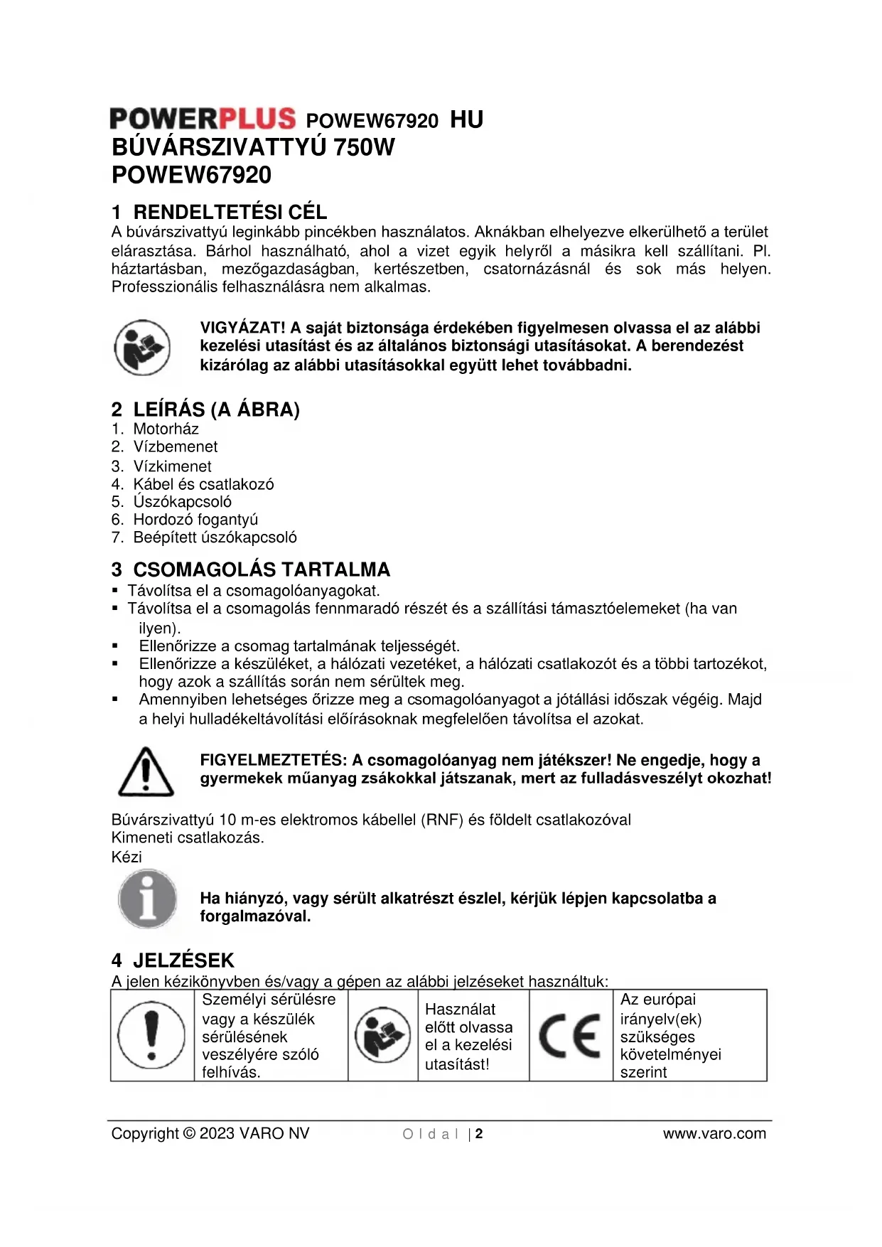 Az európai irányelv(ek) szükséges követelményei szerintPOWEW67920 HU Copyright © 2023 VARO NV O l d a l | 3 www.varo.com