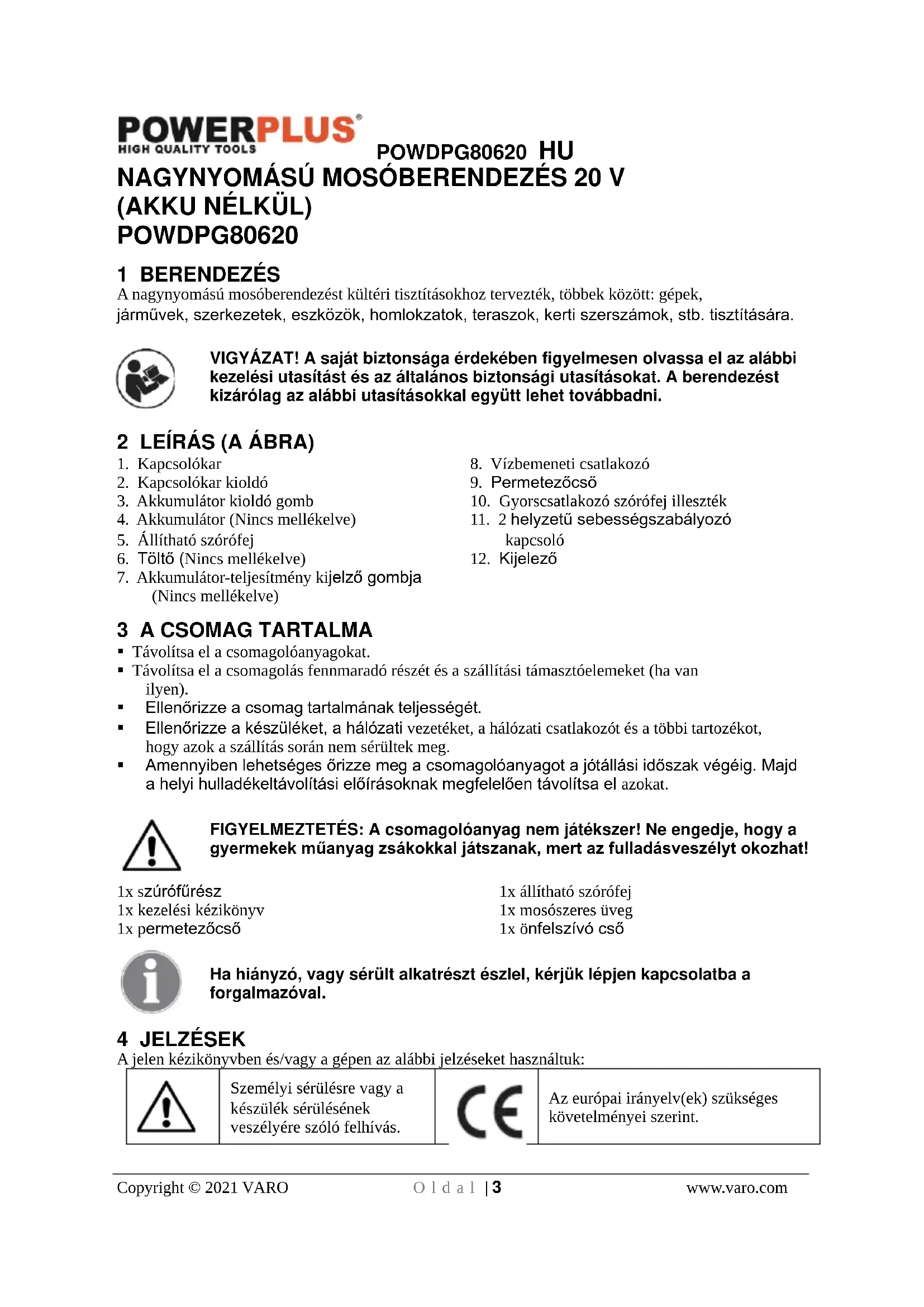 Az európai irányelv(ek) szükséges követelményei szerint.POWDPG80620 HU Copyright © 2021 VARO O l d a l | 4 www.varo.com