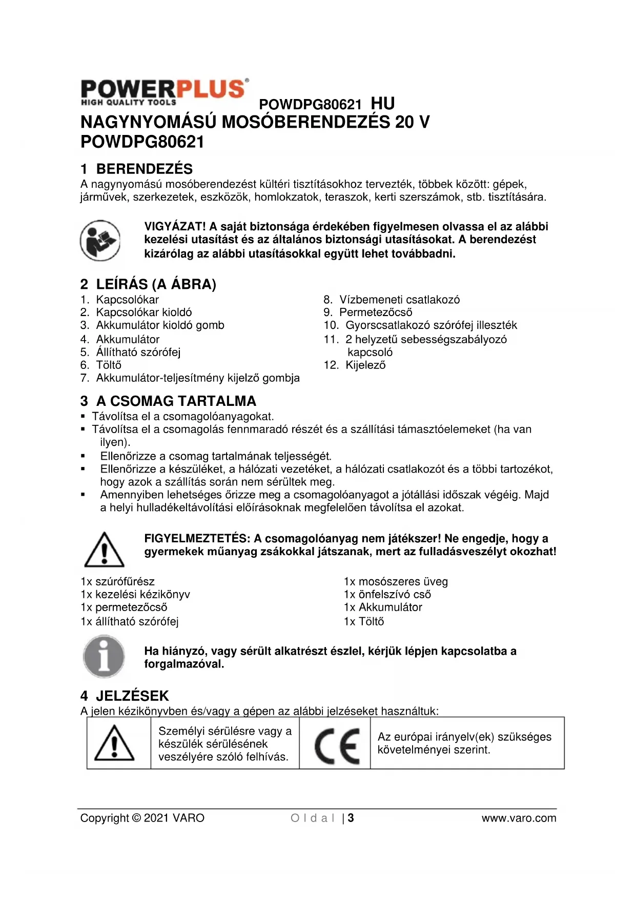 Az európai irányelv(ek) szükséges követelményei szerint.POWDPG80621 HU Copyright © 2021 VARO O l d a l | 4 www.varo.com