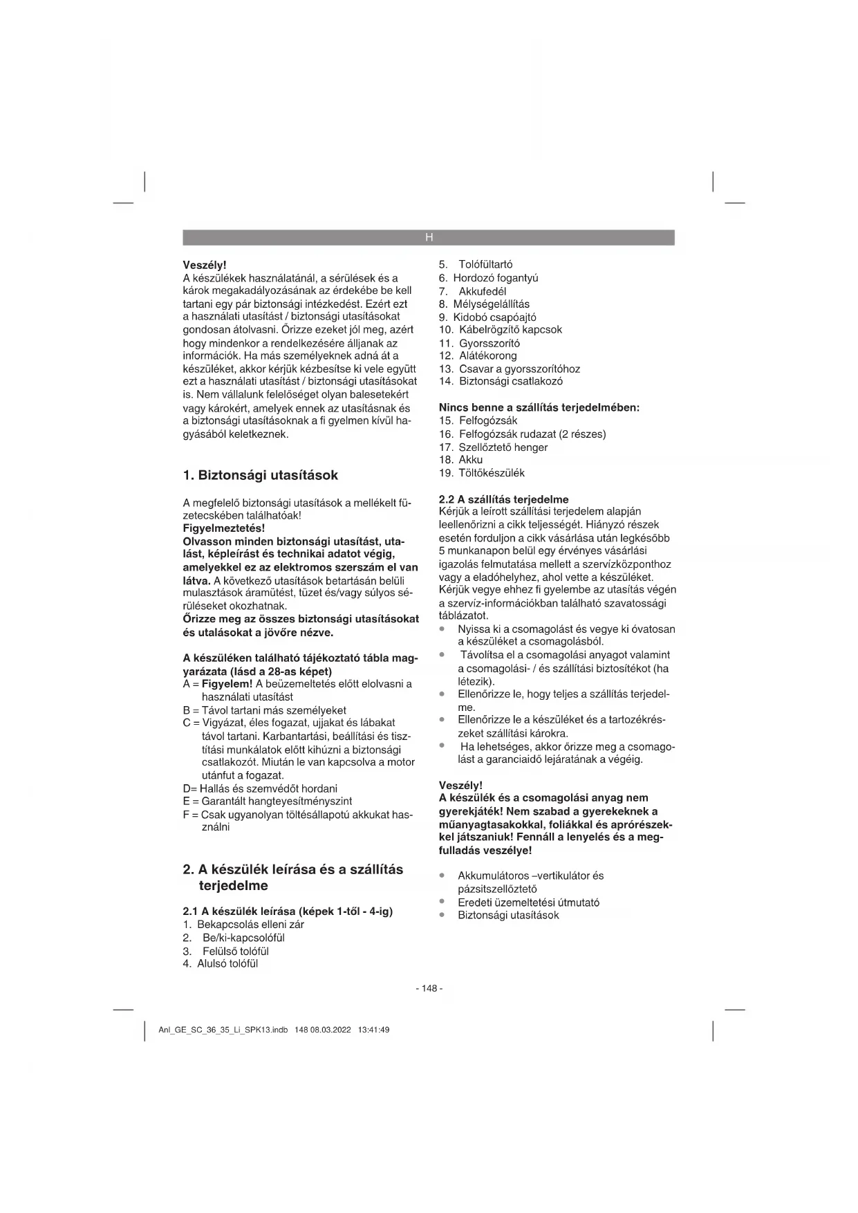 Biztonsági utasítások Anl_GE_SC_36_35_Li_SPK13.indb 148 08.03.2022 13:41:49H