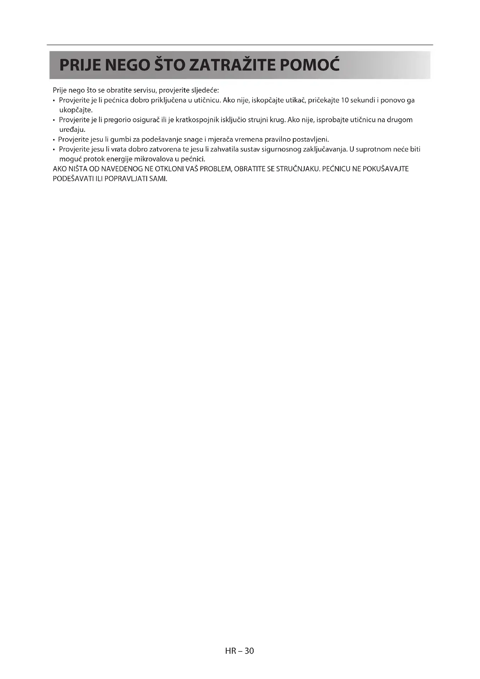 - Provjerite jesu li vrata dobro zatvorena te jesu li zahvatila sustav sigurnosnog zaključavanja. U suprotnom neće biti moguć protok energije mikrovalova u pećnici. AKO NIŠTA OD NAVEDENOG NE OTKLONI VAŠ PROBLEM, OBRATITE SE STRUČNJAKU. PEĆNICU NE POKUŠAVAJTE PODEŠAVATI ILI POPRAVLJATI SAMI. HU–1 HU–1 A. Hulladék-elhelyezési tájékoztató lakossági felhasználók részére (magán háztartások)