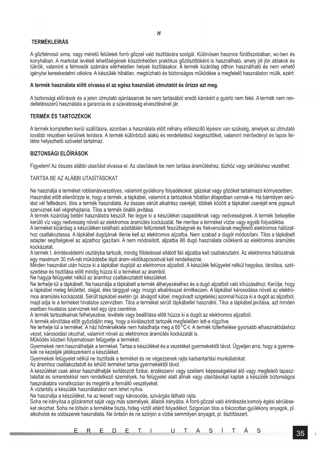 A gőzfelmosó sima, nagy méretű felületek forró gőzzel való tisztítására szolgál. Különösen hasznos fürdőszobában, wc-ben és konyhában. A markolat levételi lehetőségének köszönhetően praktikus gőztisztítóként is használható, amely jól jön ablakok és tükrök, valamint a felmosók számára elérhetetlen helyek tisztításakor. A termék kizárólag otthon használható és nem vehető igénybe kereskedelmi célokra. A készülék hibátlan, megbízható és biztonságos működése a megfelelő használaton múlik, ezért: A termék használata előtt olvassa el az egész használati útmutatót és őrizze azt meg. A biztonsági előírások és a jelen útmutató ajánlásainak be nem tartásából eredő károkért a gyártó nem felel. A termék nem ren- deltetésszerű használata a garancia és a szavatosság elvesztésével jár.