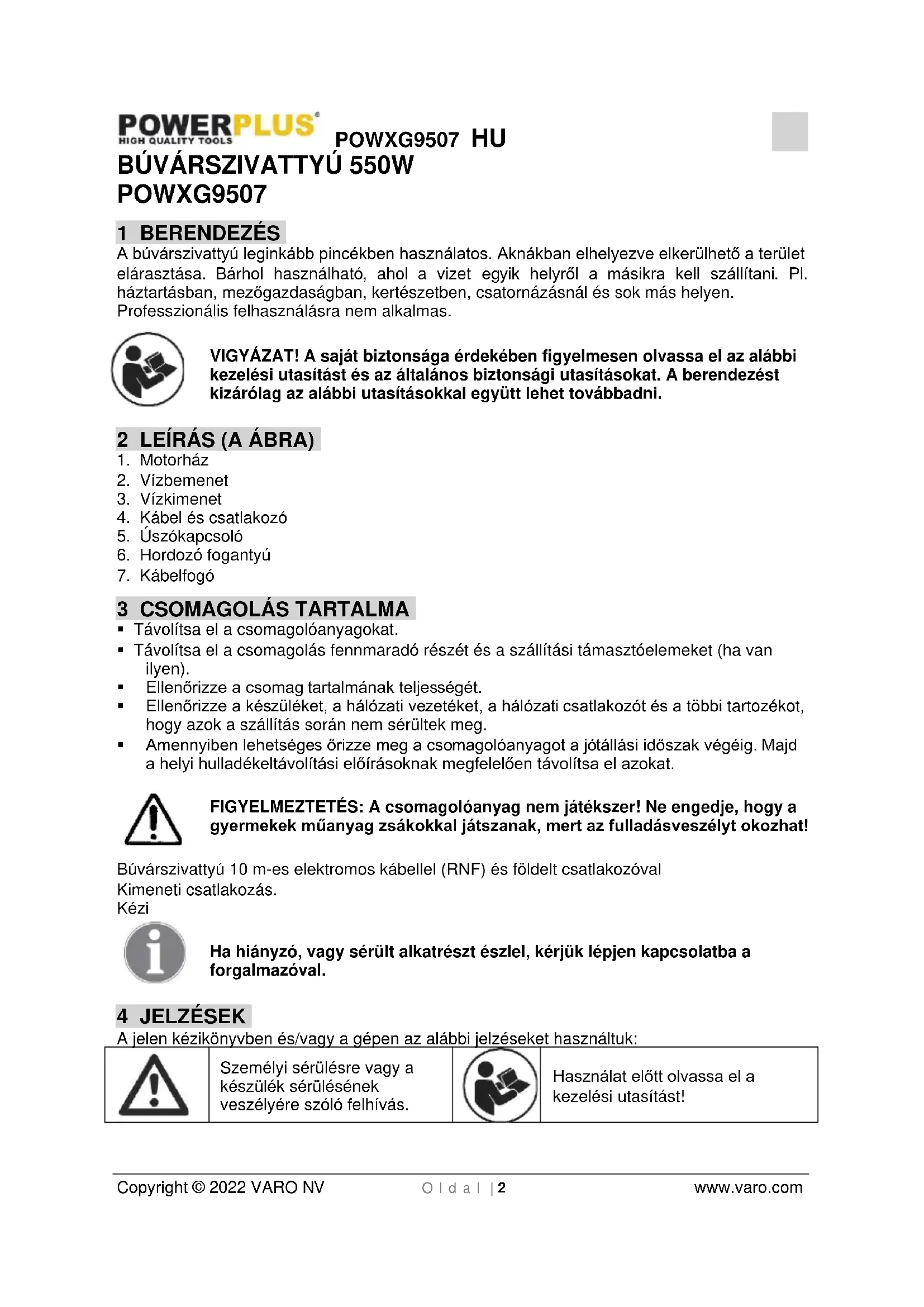 Használat előtt olvassa el a kezelési utasítást!POWXG9507 HU Copyright © 2022 VARO NV O l d a l | 3 www.varo.com