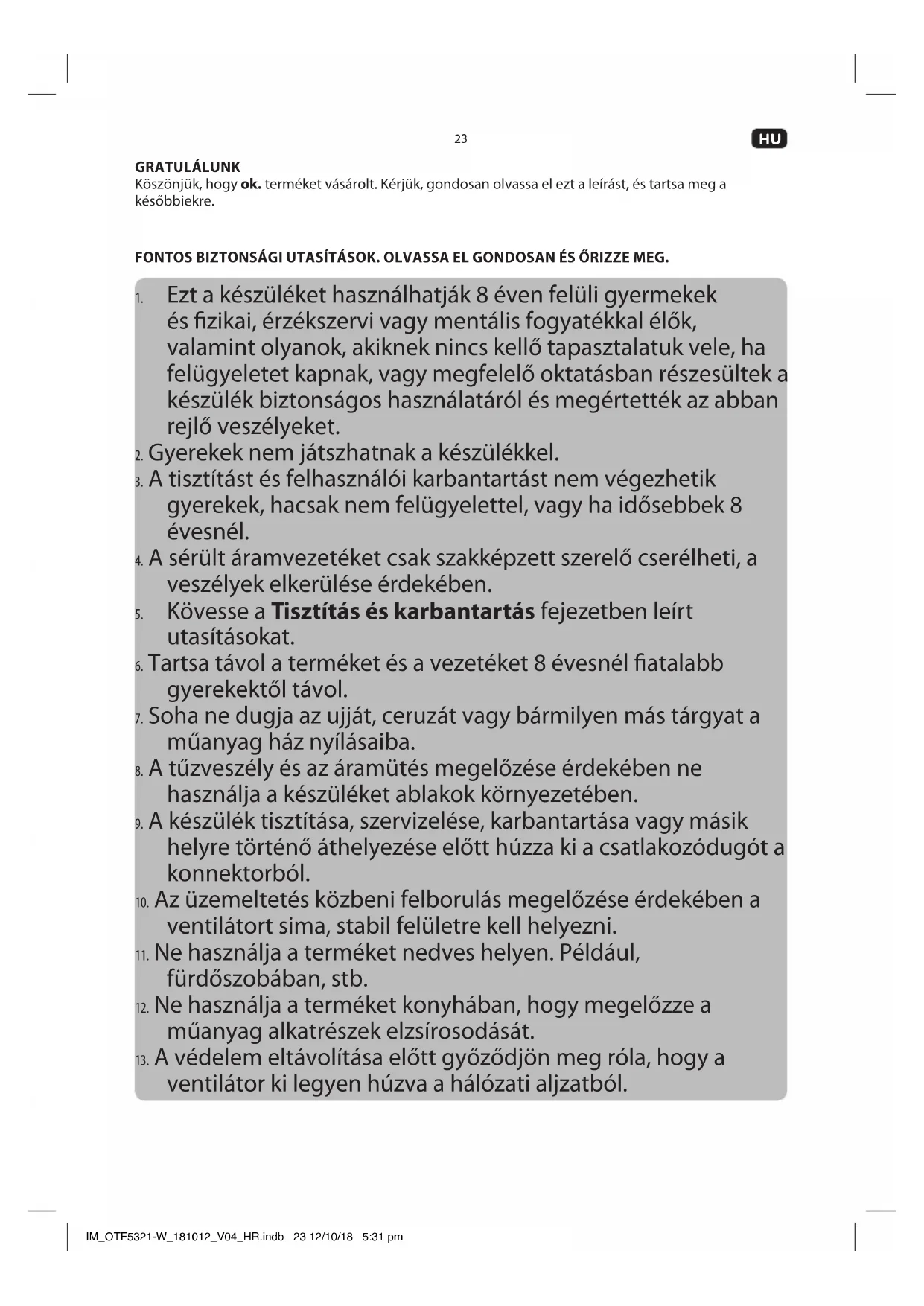 ventilátor ki legyen húzva a hálózati aljzatból. IM_OTF5321-W_181012_V04_HR.indb 23 12/10/18 5:31 pm24