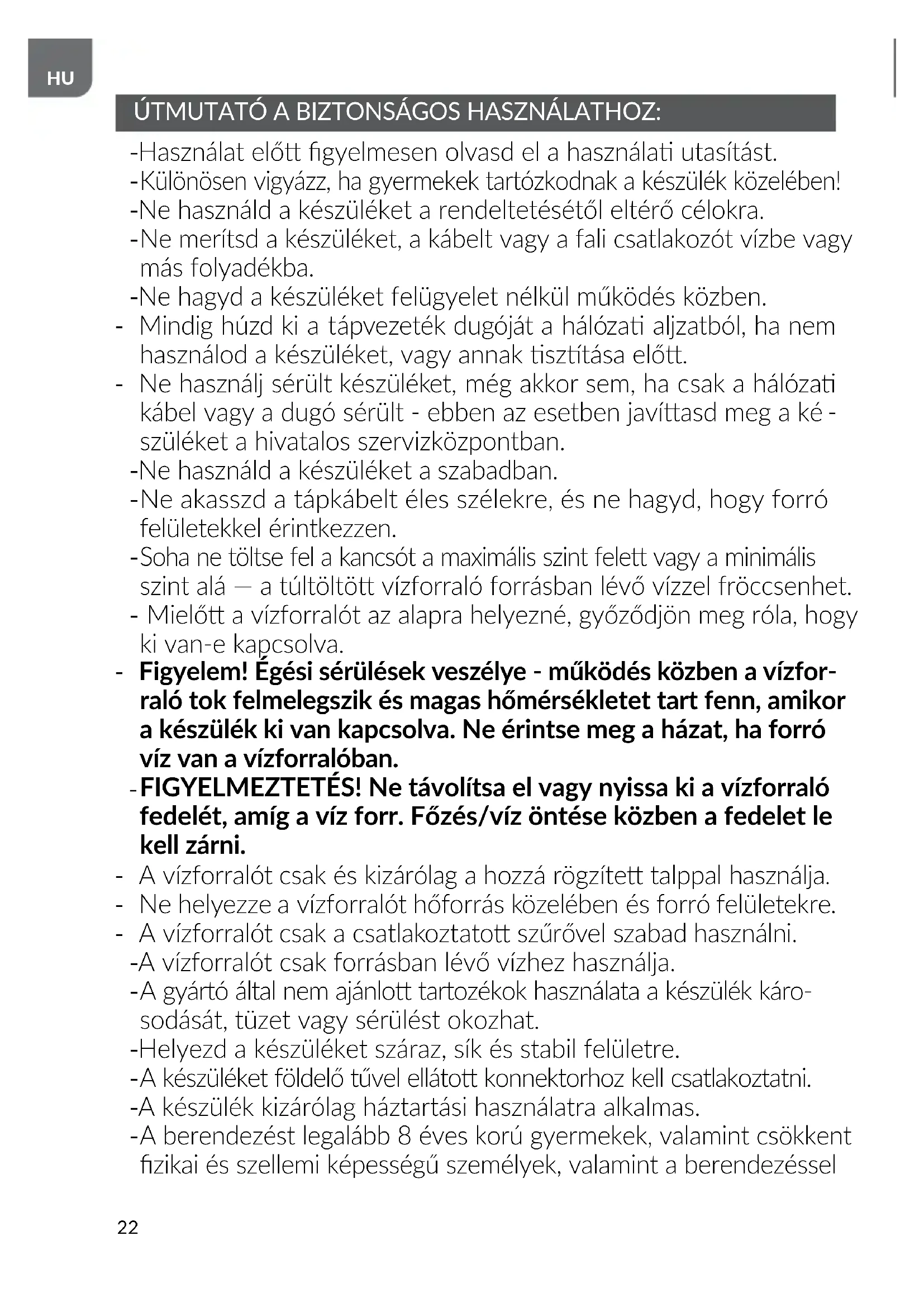 HASZNÁLATI UTASÍTÁS 22