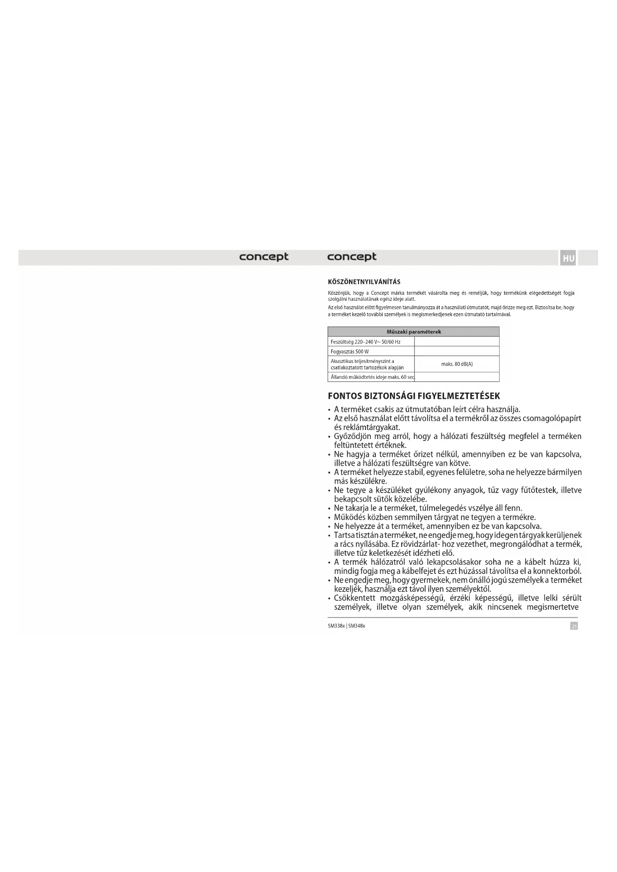 HASZNÁLATI ÚTMUTATÓ SM3483 Concept