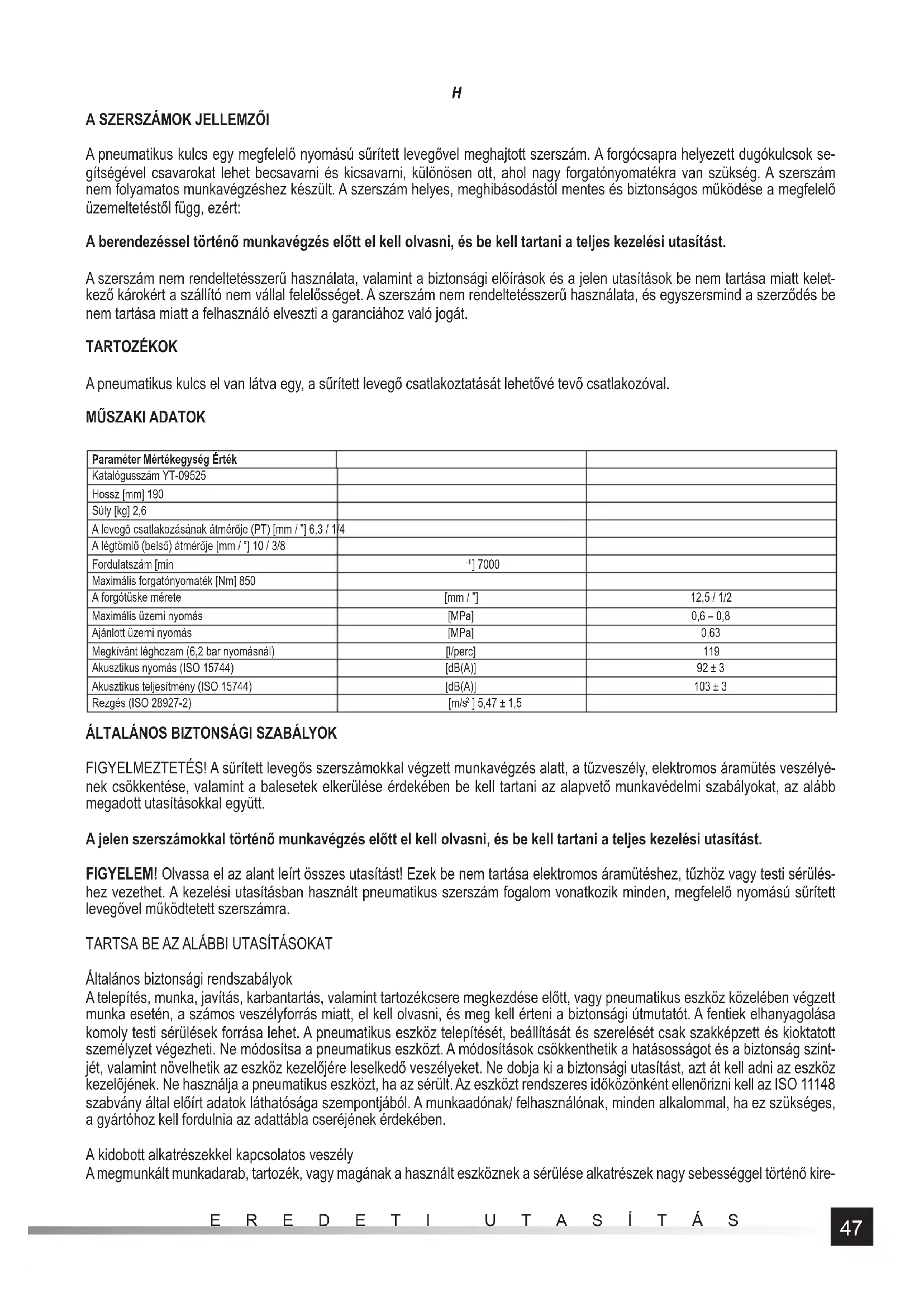 HASZNÁLATI ÚTMUTATÓ YT09525 Yato