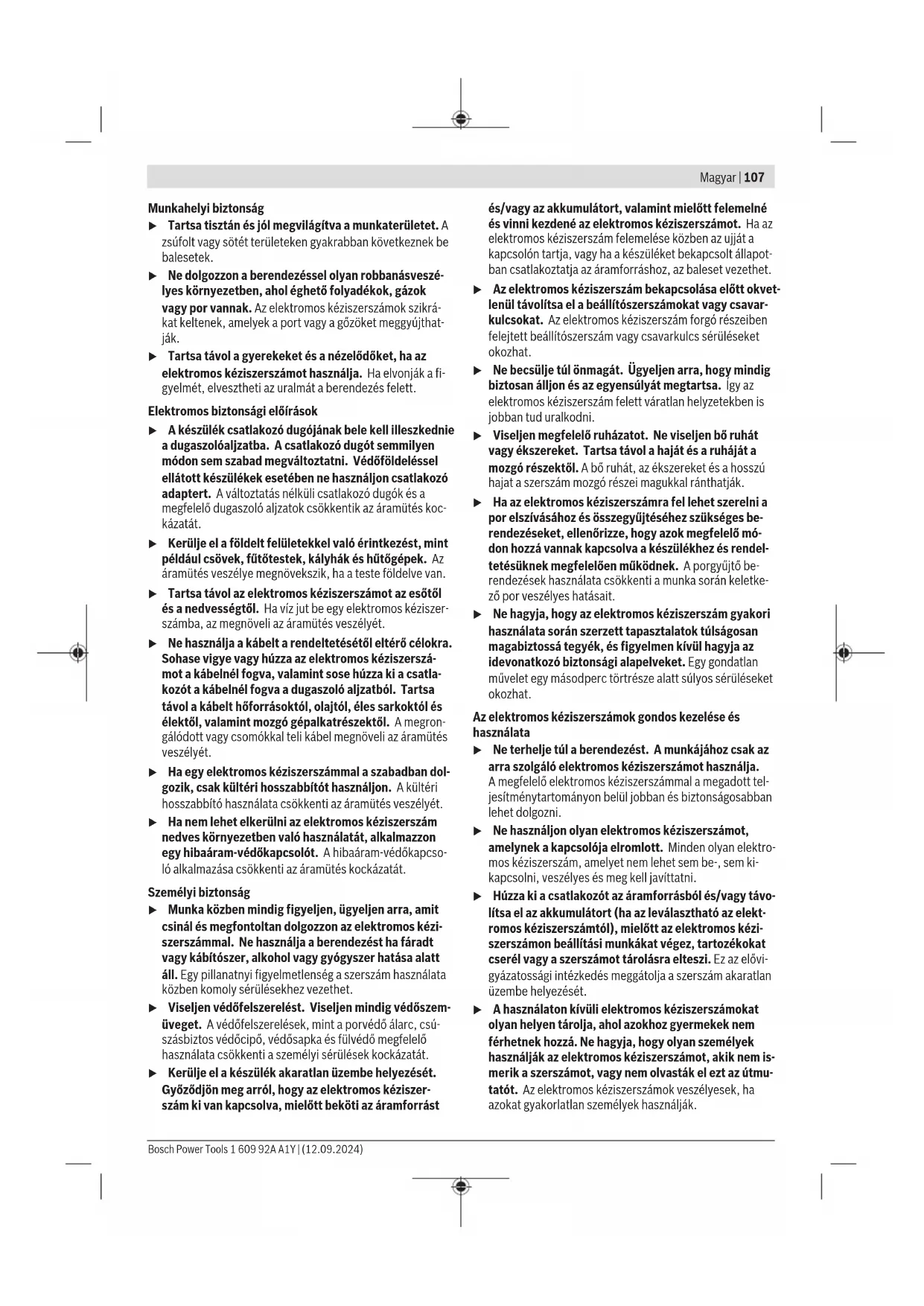 Az ezen utasításokban megadott rezgésszint és zajkibocsátá- si érték egy szabványban rögzített mérési módszerrel került meghatározásra és az elektromos kéziszerszámok egymással való összehasonlítására alkalmazható. Ez az érték a rezgés- és zajkibocsátás ideiglenes becslésére is alkalmas. A megadott rezgésszint és zajkibocsátási érték az elektro- mos kéziszerszám fő alkalmazásaira vonatkozik. Ha az elekt- romos kéziszerszámot más alkalmazásokra, eltérő betétszer- számokkal vagy nem kielégítő karbantartás mellett használ- ják, a rezgésszint és a zajkibocsátási érték a fenti értékektől eltérhet. Ez az egész munkaidőre vonatkozó rezgés- és zajki- bocsátást lényegesen megnövelheti. A rezgés- és zajkibocsátás pontos megbecsüléséhez figye- lembe kell venni azokat az időszakokat is, amikor a készülék kikapcsolt állapotban van, vagy amikor be van ugyan kap- csolva, de nem kerül ténylegesen használatra. Ez az egész munkaidőre vonatkozó rezgés- és zajkibocsátást lényegesen csökkentheti. Hozzon kiegészítő biztonsági intézkedéseket a kezelőnek a rezgések hatása elleni védelmére, például: Az elektromos ké- ziszerszám és a betétszerszámok karbantartása, a kezek me- legen tartása, a munkamenetek megszervezése. Akkumulátor A Bosch vállalat az akkumulátoros elektromos kéziszerszá- mokat akkumulátorok nélkül is árusítja. Azt, hogy az Ön elektromos kéziszerszámának szállítási terjedelme egy akku- mulátort is magában foglal-e, a csomagolásról lehet leolvas- ni. Bosch Power Tools 1 609 92A A1Y | (12.09.2024)110 | Magyar Az akkumulátor feltöltése u Csak a Műszaki Adatoknál megadott töltőkészüléke- ket használja. Csak ezek a töltőkészülékek felelnek meg pontosan az Ön elektromos kéziszerszámában alkalma- zásra kerülő Li‑ion-akkumulátornak. Figyelem: A lítium-ion-akkumulátorok a nemzetközi szállítási előírásoknak megfelelően csak részben feltöltve kerülnek ki- szállításra. Az akkumulátor teljes teljesítményének biztosítá- sára az első alkalmazás előtt töltse fel teljesen az akkumulá- tort. Az akkumulátor beszerelése Tolja be a feltöltött akkumulátort az akkumulátor fogadó egy- ségbe, amíg az érezhetően bepattan. Az akkumulátor kivétele Az akkumulátor eltávolításához nyomja meg az akkumulátor reteszelésfeloldó gombot és húzza ki az akkumulátort. Ne erőltesse a kihúzást. Az akkumulátor 2reteszelővállal van ellátva, amelyek meggá- tolják, hogy az akkumulátor az akkumulátor reteszelésfeloldó gomb akaratlan megnyomásakor kiessen. Amíg az akkumulá- tor be van helyezve az elektromos kéziszerszámba, azt egy rugó a helyén tartja. Akkumulátor töltöttségi szint kijelző Az akkumulátor töltési szint kijelző display zöld LED-jei az ak- kumulátor töltési szintjét mutatják. A töltöttségi szintet biz- tonsági okokból csak használaton kívüli elektromos kéziszer- szám esetén lehet lekérdezni. Nyomja meg a vagy a feltöltési szint kijelző gombot, hogy kijelezze a töltési szintet. Erre kivett akkumulátor ese- tén is van lehetőség. Ha az akkumulátor feltöltési szint kijelző gomb megnyomása után egy LED sem világít, az akkumulátor meghibásodott és ki kell cserélni. Akkumulátor típus: GBA 18V... LED Kapacitás Tartós fény, 3×zöld 60–100% Tartós fény, 2×zöld 30–60% Tartós fény, 1×zöld 5–30% Villogó fény, 1×zöld 0–5% Akkumulátor típus: ProCORE18V... LED Kapacitás Tartós fény, 5×zöld 80–100% Tartós fény, 4×zöld 60–80% Tartós fény, 3×zöld 40–60% LED Kapacitás Tartós fény, 2×zöld 20–40% Tartós fény, 1×zöld 5–20% Villogó fény, 1×zöld 0–5% Tájékoztató az akkumulátor optimális kezeléséhez Óvja meg az akkumulátort a nedvességtől és a víztől. Az akkumulátort csak a –20°C...50°C hőmérséklet tarto- mányban szabad tárolni. Ne hagyja például az akkumulátort nyáron egy gépjárműben. Időnként tisztítsa meg az akkumulátor szellőzőrését egy pu- ha, tiszta és száraz ecsettel. Ha az akkumulátor feltöltése után a készülék már csak lénye- gesen rövidebb ideig üzemeltethető, akkor az akkumulátor elhasználódott és ki kell cserélni. Vegye figyelembe a hulladékba való eltávolítással kapcsola- tos előírásokat. Összeszerelés u Minden elektromos kéziszerszámon végzett munka előtt (pl. karbantartás, szerszámcsere stb.) vegye ki az akkumulátort az elektromos kéziszerszámból. Ellen- kező esetben a be‑/kikapcsoló véletlen megérintésekor bekapcsolódó készülék sérüléseket okozhat. A csiszolópapír kicserélése (lásdaAábrát) A (8) csiszolópapír levételéhez emelje azt oldalt fel és húzza le a (5) csiszolótányérról. Egy új csiszolópapír felhelyezése előtt távolítsa el, például egy ecsettel, a szennyeződéseket és a port a (5) csiszolótá- nyérról. A (5) csiszolótányér felülete tépőzáras szövetből áll, hogy ar- ra gyorsan és egyszerűen fel lehessen erősíteni a tépőzárral a csiszolópapírokat. Nyomja erőteljesen rá a (8) csiszolópapír a (5) csiszolótá- nyérra. Az optimális porelszívás biztosításához ügyeljen arra, hogy a (8) csiszolópapír nyílásai egybeessenek a (5) csiszolótányér furataival. A csiszolótányér élettartamának a megnövelésére, mindenek előtt hálós csiszolóeszközök (például Bosch M480) alkalma- zása esetén, be lehet tenni a PadSavert (külön tartozék) a csiszolótányér és a csiszolóeszköz közé. A csiszoló tányér kiválasztása Az elektromos kéziszerszámot az alkalmazástól függően kü- lönböző keménységű csiszolótányérokkal lehet felszerelni: – Puha csiszoló tányér: Érzéssel végrehajtott csiszolási munkákhoz, homorú vagy domború felületeken is hasz- nálható – Közepesen kemény csiszoló tányér:
