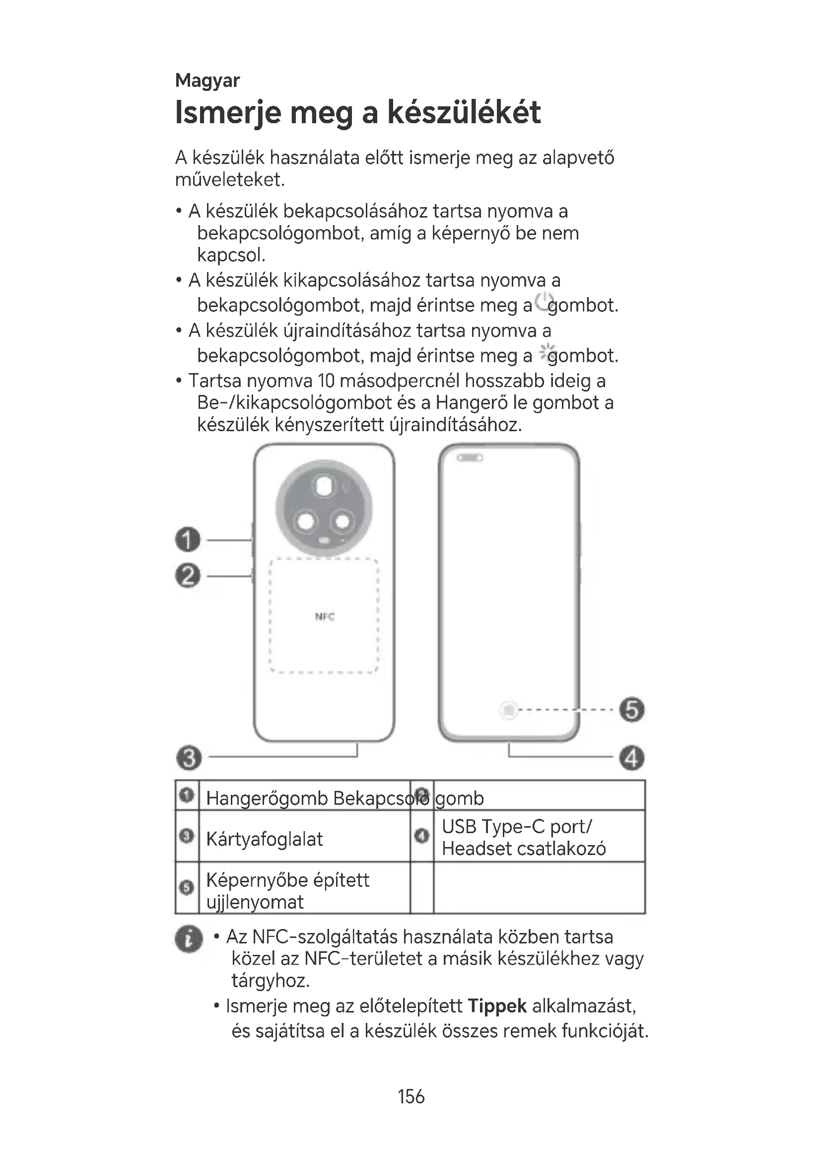 ZÁRUKU. Zásady ochrany osobných údajov Pre lepšie porozumenie toho, ako chránime vaše osobné údaje, si pozrite stratégiu ochrany osobných údajov na https://www.hihonor.com/privacy-policy/worldwide/. 155Magyar Ismerje meg a készülékét A készülék használata előtt ismerje meg az alapvető műveleteket.