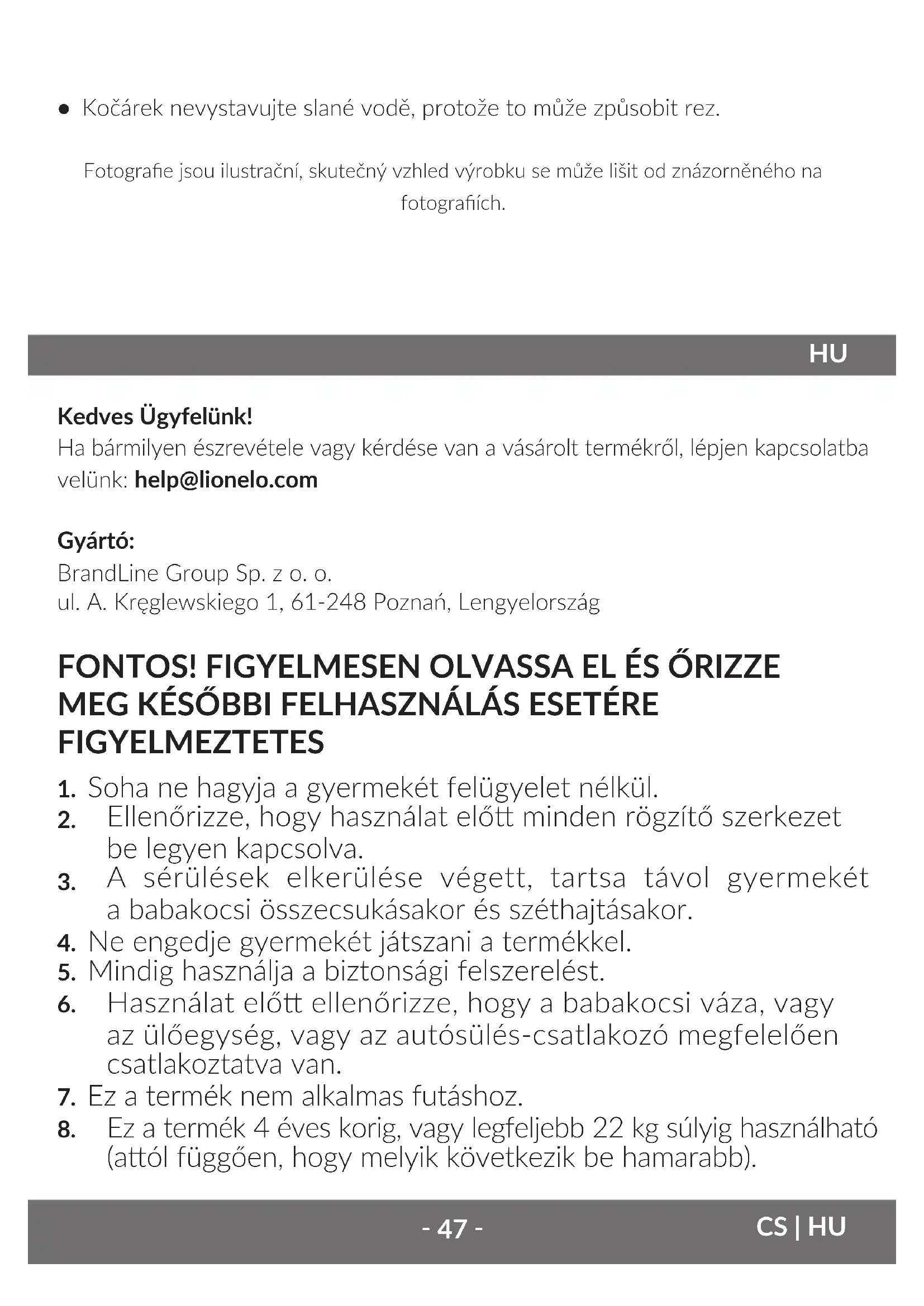 Kedves Ügyfelünk! Ha bármilyen észrevétele vagy kérdése van a vásárolt termékről, lépjen kapcsolatba velünk: help@lionelo.com Gyártó: BrandLine Group Sp. z o. o. ul. A. Kręglewskiego 1, 61-248 Poznań, Lengyelország